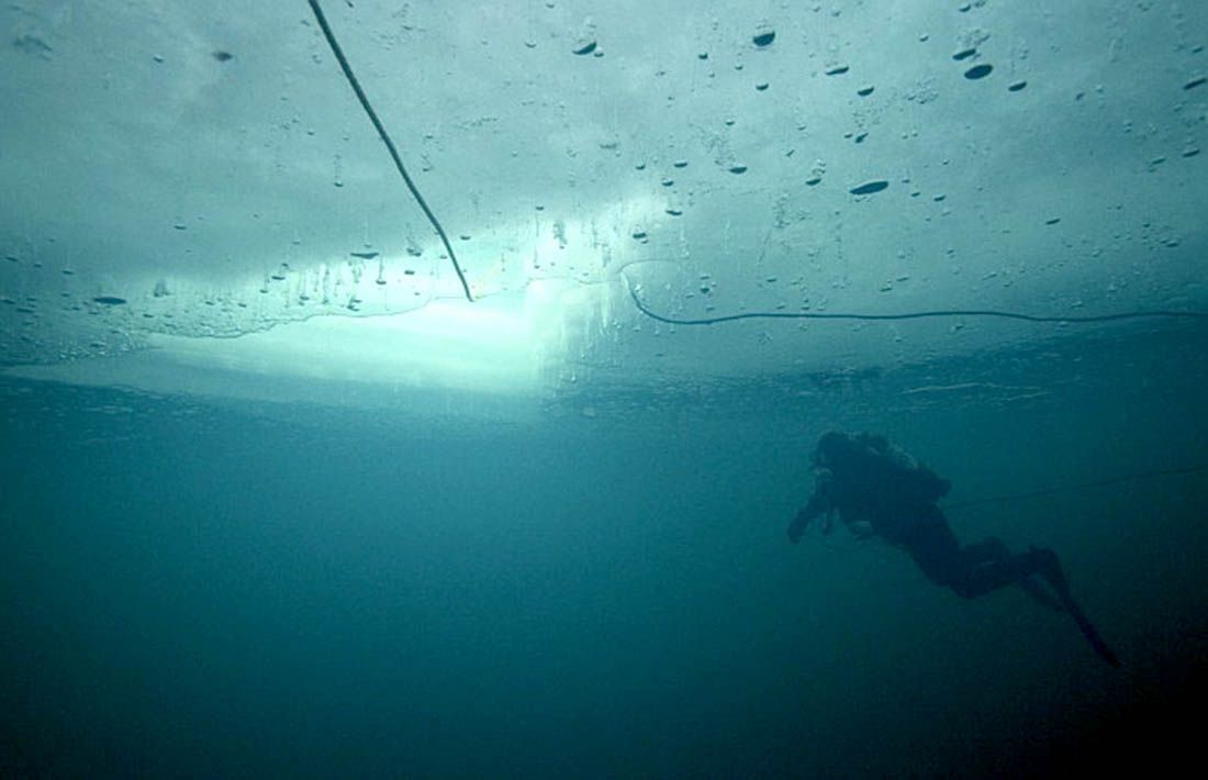 Osim ljepote površinskog sloja leda, ronjenje pod ledenim prostorom Arktika ili Antarktike pruža jedinstvena iskustva sa životinjskim svijetom i ronilačke aktivnosti koje je teško naći nigdje drugdje na svijetu. No nemaju svi mogućnosti otići na sjeverni ili južni kraj planete. U zimskim uvjetima, bilo da se radi o morskim ili slatkovodnim prostranstvima, hladnokrvne morske/vodene životinje dramatično usporavaju metabolizam, što znači da se ne kreću ako ne moraju. Sve dok ronilac mirno pliva, može se približiti ribama i beskičmenjacima na neobično kratkim udaljenostima. Napunite suho odijelo i preokrenite položaj, a možete čak i promatrati te životinje dok stoje naopako na površini leda.