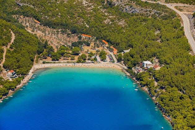 Plaža se od lokacije približnih koordinata (42°49'01" N , 17°40'33" E) do lokacije približnih koordinata (42°48'59" N , 17°40'28" E), koristi kao prometnica za automobile, (manje) kamione i motocikle. Približna duljina tako improvizirane "prometnice" je 125 m.