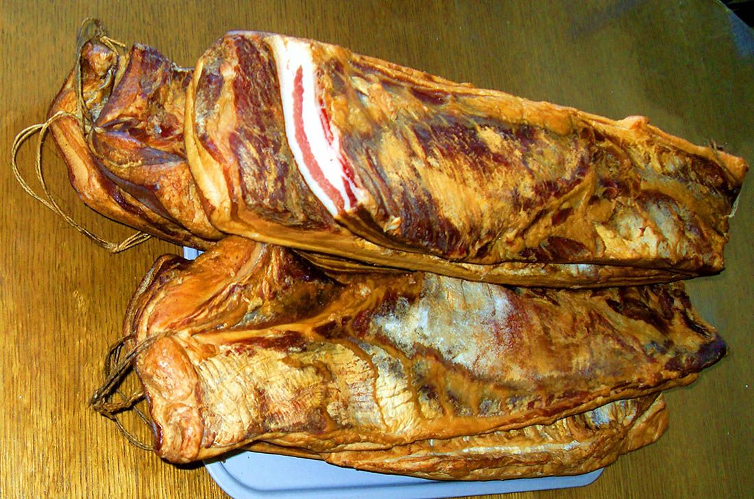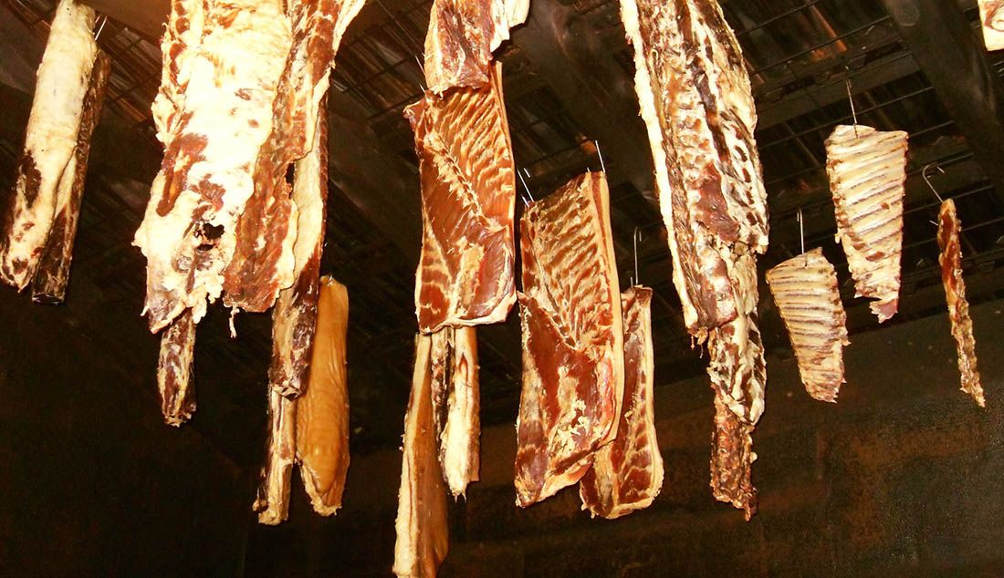 Nakon tjedan dana, meso isprati tekućom vodom i objesiti da se ocijedi. Držati ga u pušnici na zraku i dimu oko 45 dana. Koristim svoja drva sa sela za sušenje: grab, hrast i jasen. Meso ne treba pretjerano dimiti jer ga suši, zrak, propuh i bura.
