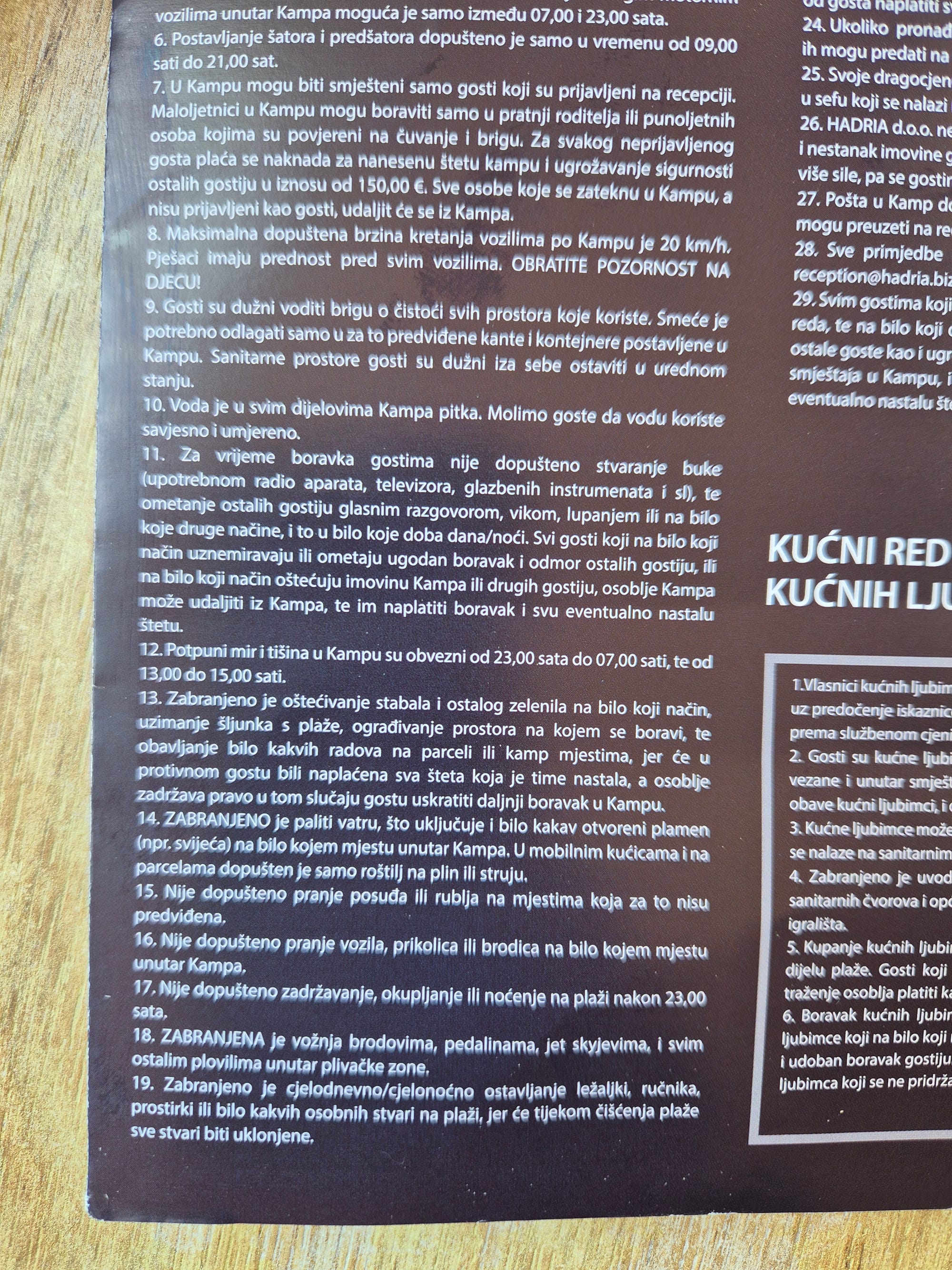 A sada i jedan fun fact; naime javio nam se jedan gost ovog kampa koji je fotografirao njihov kućni red. Evo što čovjek kaže: