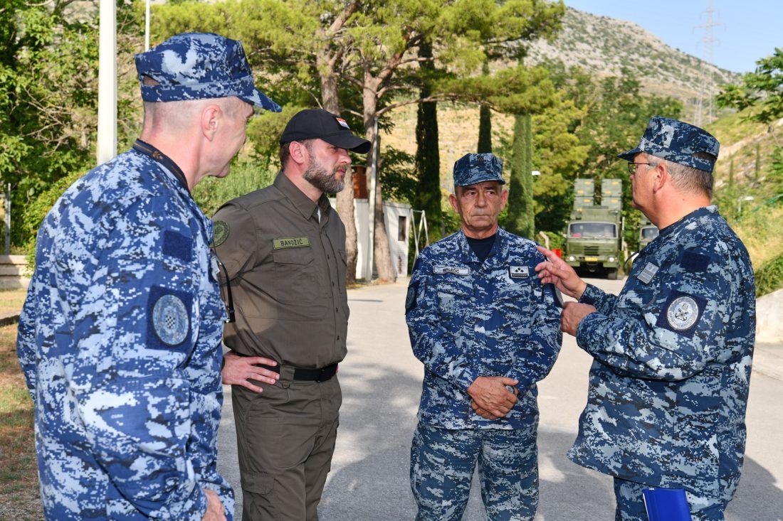 ŽRNOVNICA – Ministar obrane Mario Banožić u pratnji načelnika Glavnog stožera Oružanih snaga RH admirala Roberta Hranja u srijedu, 28. srpnja 2021. godine bio je u radnom posjetu vojarni „Sveti Juraj“ u Žrnovnici.
