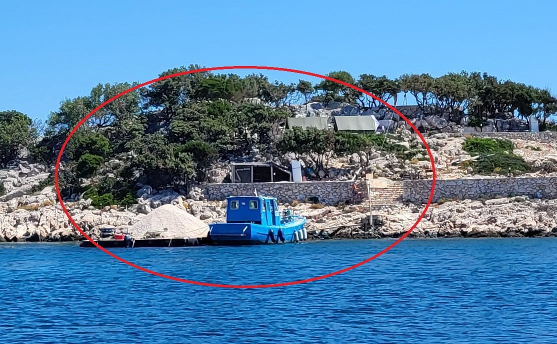 - Upravo smo prošli otočić Crnikovac Mali između otoka Žut i Kornat gdje traju radovi. Na vrhu se radi i kuća - poručuje nautičarka koja nam šalje ove prizore na kojima se ne može uočiti zakonski obavezna tabla na kojoj treba biti opis radova s građevinskom i drugim potrebnim dozvolama, kao i tko je izvođač radova.