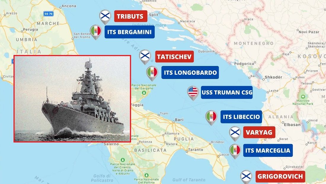 Prije tri tjedna brodovi ruske mornarice pokušali su blokirati izlaz američkog nosača aviona Harry Truman iz Jadranskog mora, otkrio je u intervjuu za rimsku La Repubblicu admiral Giuseppe Cavo Dragone, načelnik talijanskog Vrhovnog stožera obrane. On je rekao da su ruski ratni brodovi stigli duž talijanske obale sve do Ancone.