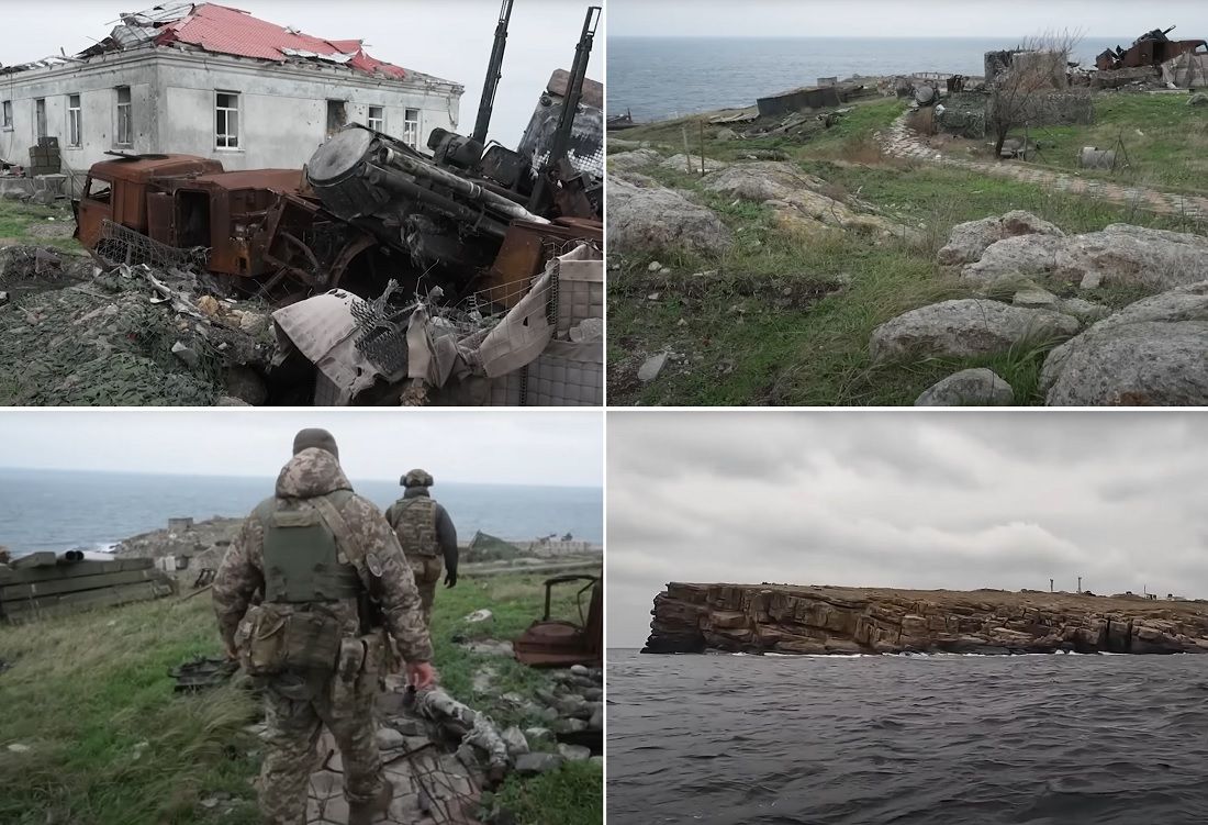 Zmijski otok sada je pusto mjesto, posuto olupinama, nekoliko njegovih zgrada svedenih na ruševine, njegov napola potopljeni mol poharan plimom. To je groblje skupe ruske vojne opreme - i prepuno je neeksplodiranih ubojitih sredstava i mina. Ovo nije mjesto za nepažnju.