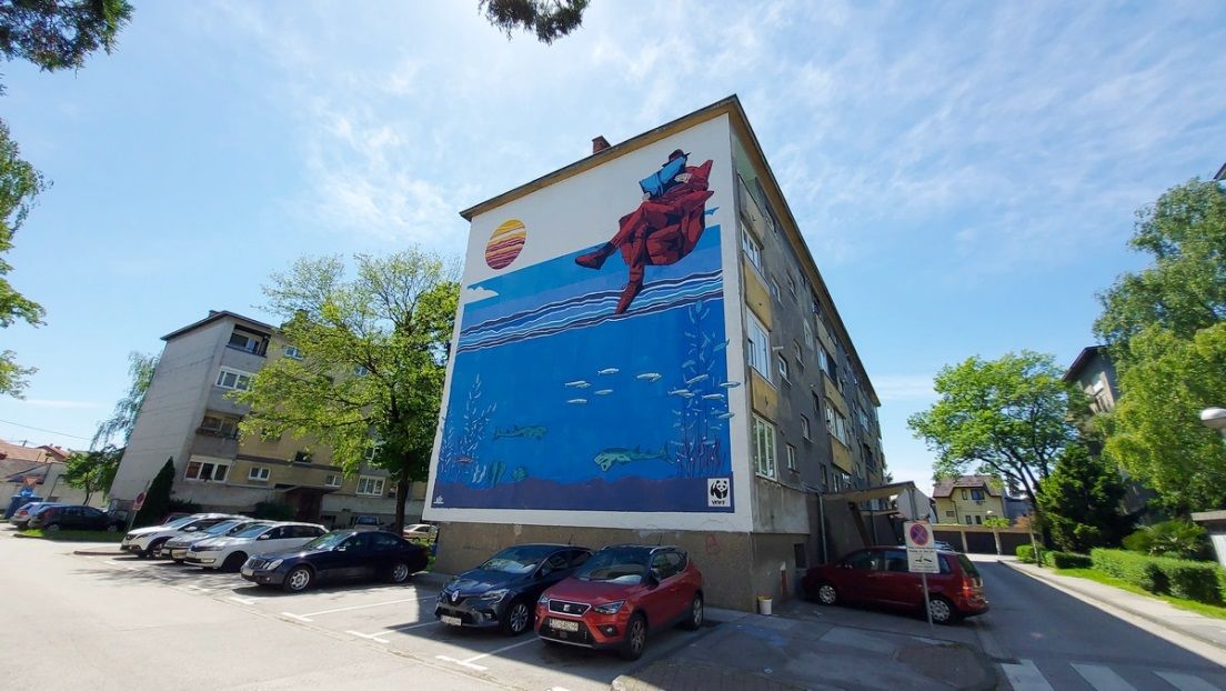 Mural pod nazivom „Daj ribi šansu“ poseban je iz bar dva razloga. Prvi je taj što ga krasi dodatni sloj proširene stvarnosti (eng. augmented reality) koji se aktivira pomoću pametnog telefona ili tableta.