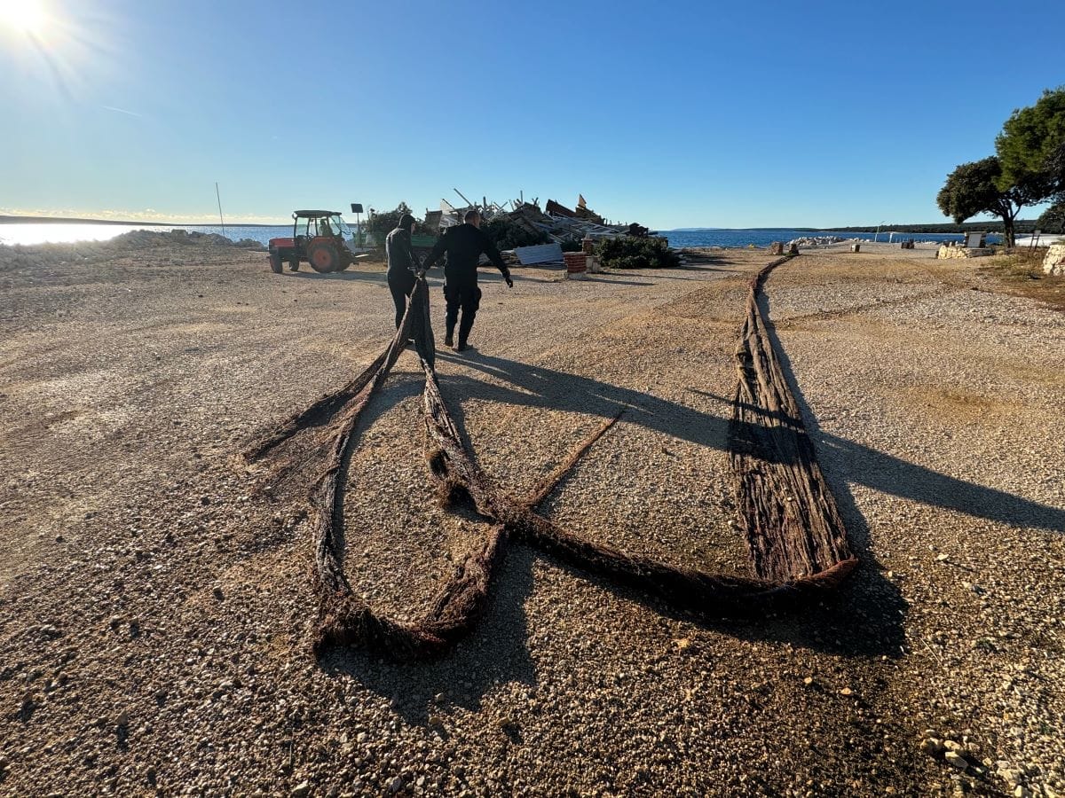 Prvog dana akcije, tim je uklonio ribarsku mrežu dugu 70 metara s maksimalne dubine od 37,1 metar. Ova mreža, zapetljana u blizini arheološkog nalazišta, predstavljala je značajnu prijetnju morskom ekosustavu i očuvanju nalazišta. Nakon pažljivog izvlačenja, mreža je dotegljena do Kampa Šimuni, gdje je uz pomoć terenskog vozila izvađena iz mora.