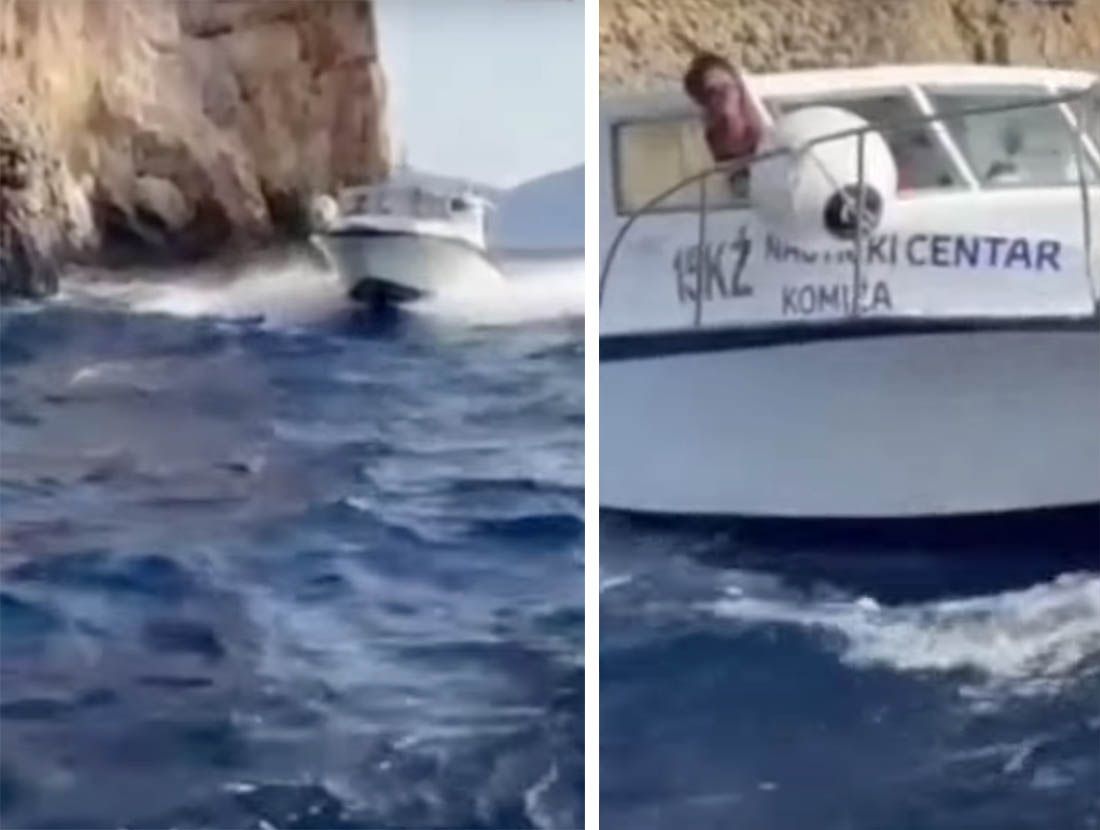 Čovjek, koji se nalazi na brodu u vlasništvu Nautičkog centra Komiža, osim pogrdnih izraza, u jednom trenutku bio je toliko blizu turističkom brodu, a bili su veliki valovi, da se činilo kako će se zabiti u njega. Sve kako bi otjerao turiste odavde.
