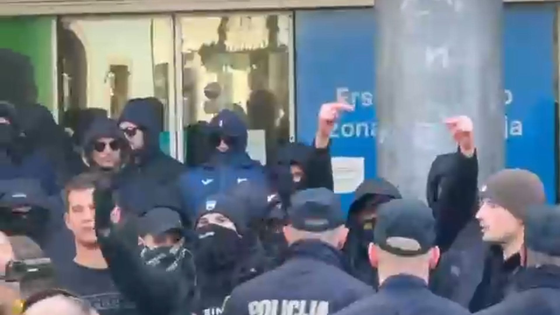 Na snimci koju je objavio Index, vidi se kako mladići u crnom pokazuju srednji prst okupljenima.