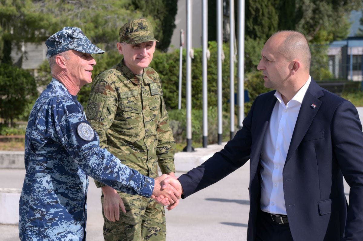 Potpredsjednik Vlade i ministar obrane Ivan Anušić i načelnik Glavnog stožera OSRH general-pukovnik Tihomir Kundid sa suradnicima posjetili su danas, 10. travnja 2024. u Splitu tvrtku Brodosplit d.d. te zapovjedništvo Hrvatske ratne mornarice u vojarni „Admiral flote Sveto Letica-Barba“.