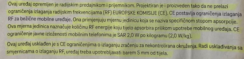 Zašto onda piše u uputama mobitela "držati barem 5 mm od tijela i koristiti žičane slušalice"?
