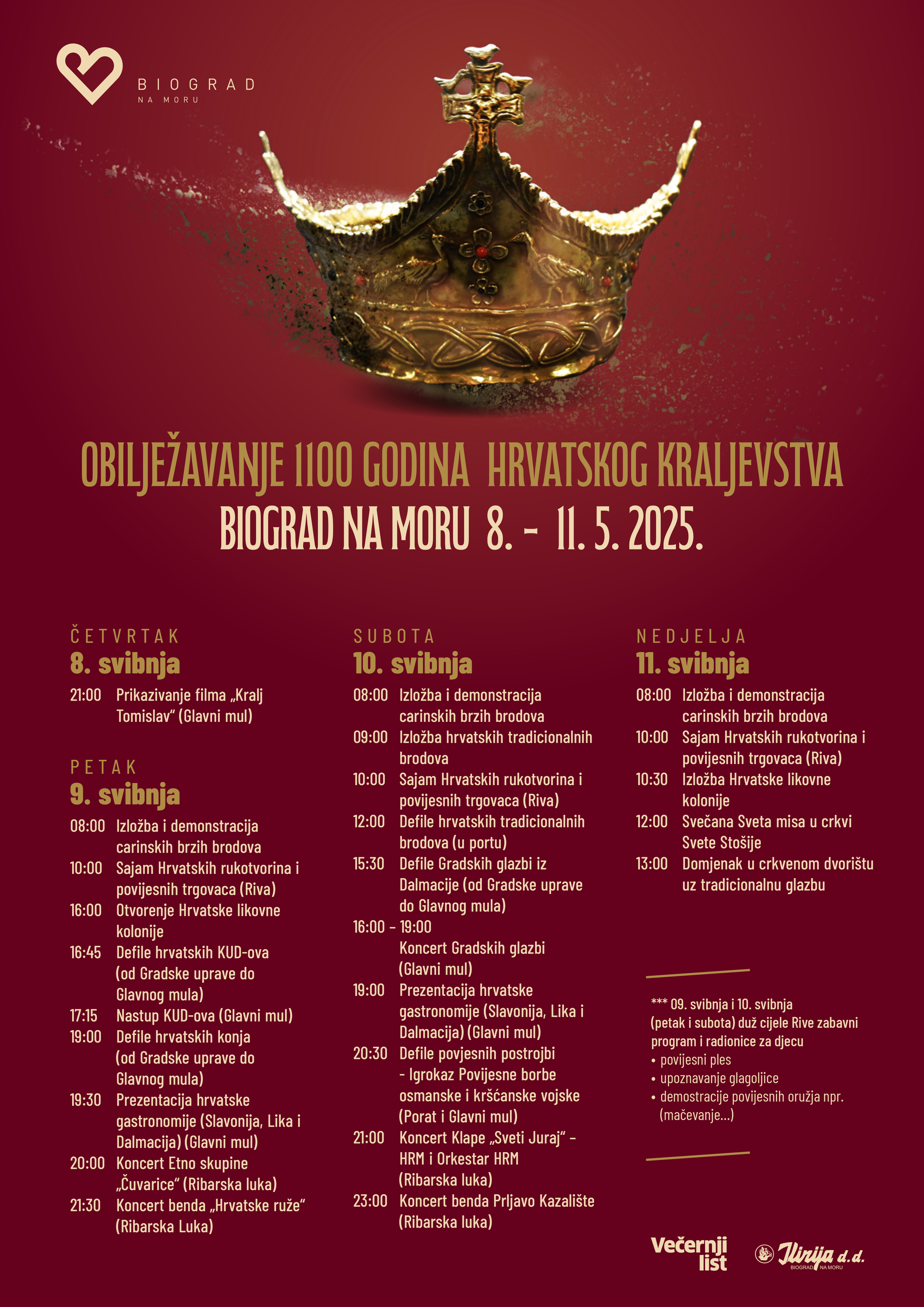 Od 8. do 11. svibnja 2025. Biograd na Moru postaje jedno posebno mjesto! Mjesto na kojem će oživjeti duh kraljevskih vremena i mjesto na kojek će se na jedan veličanstven način slaviti hrvatski identitet.