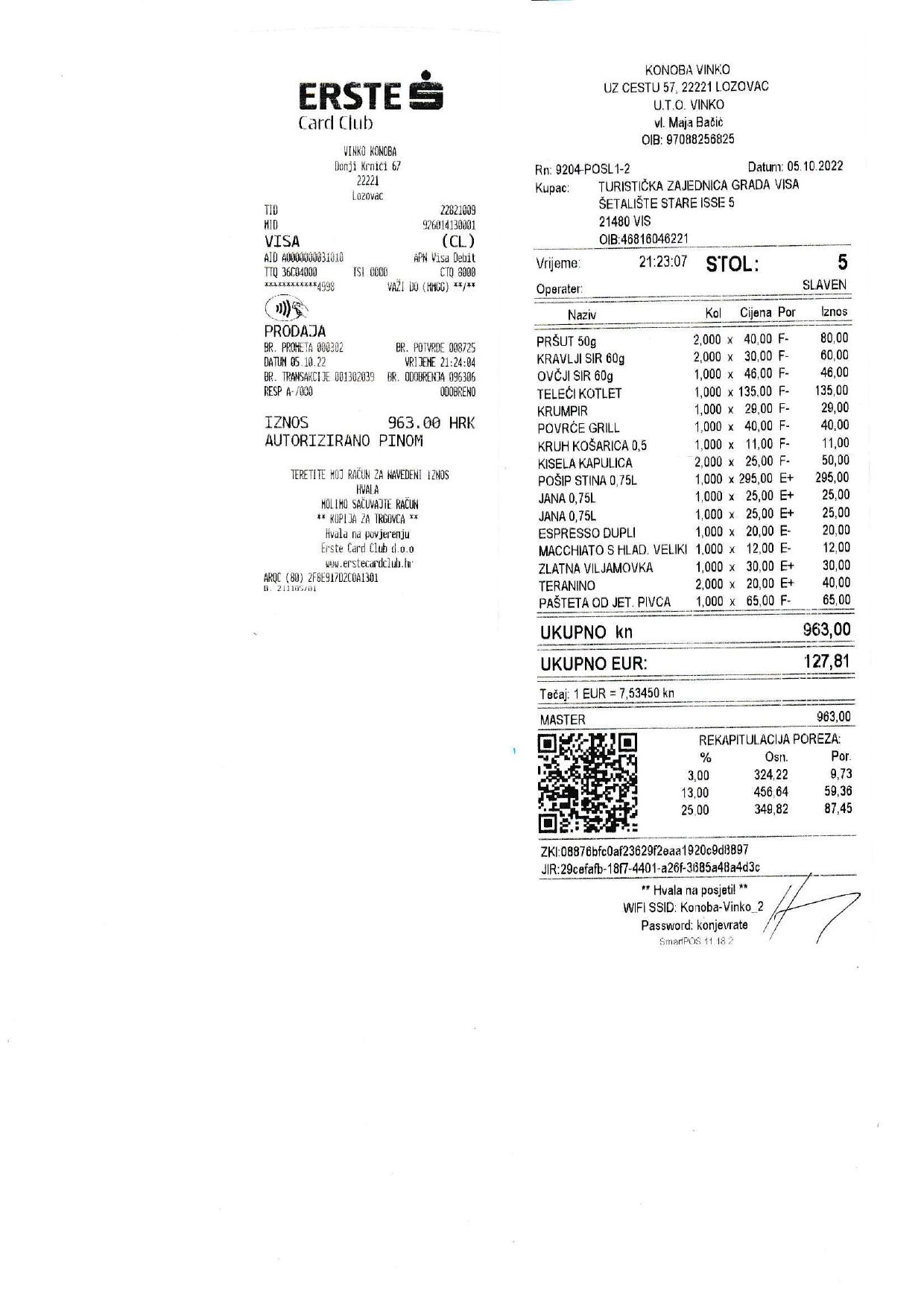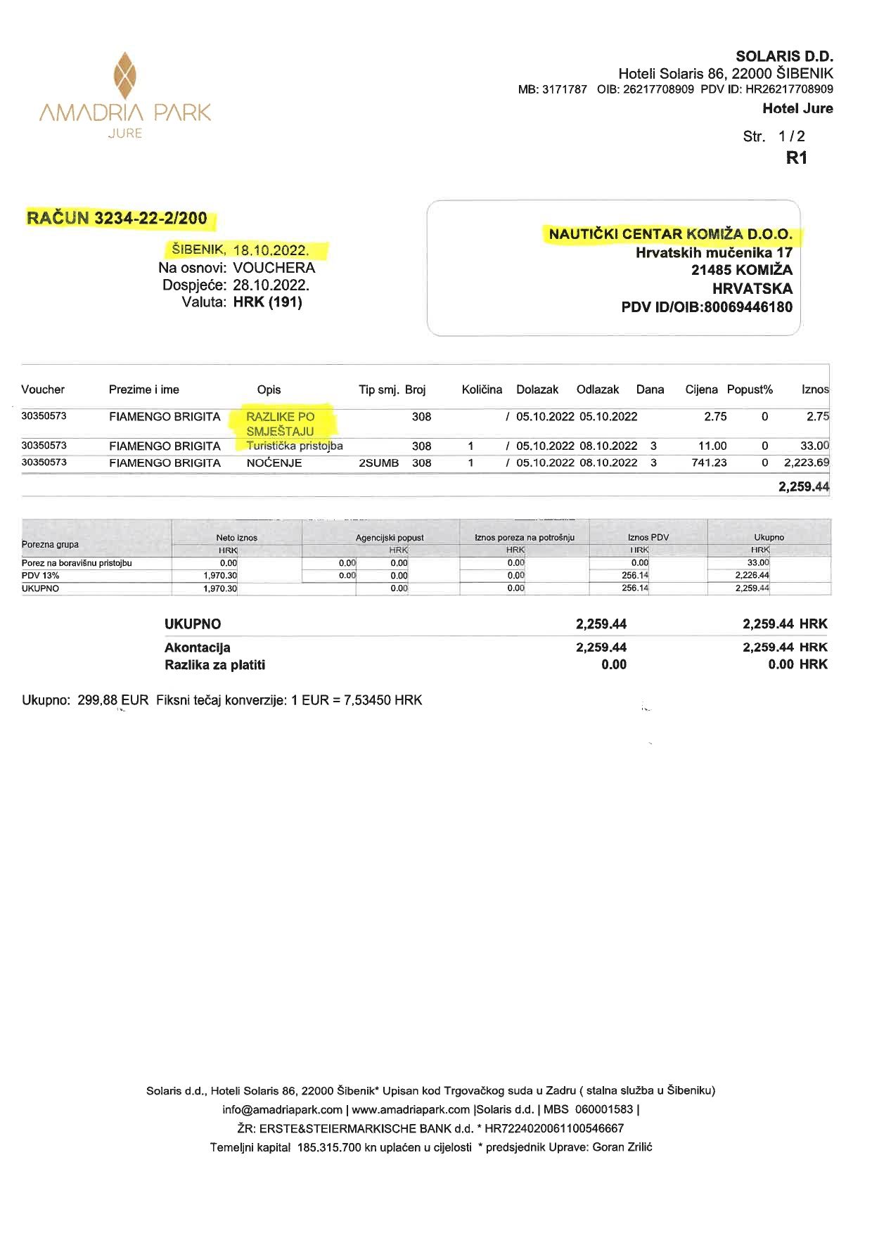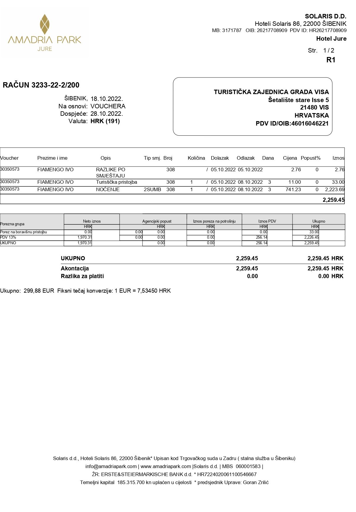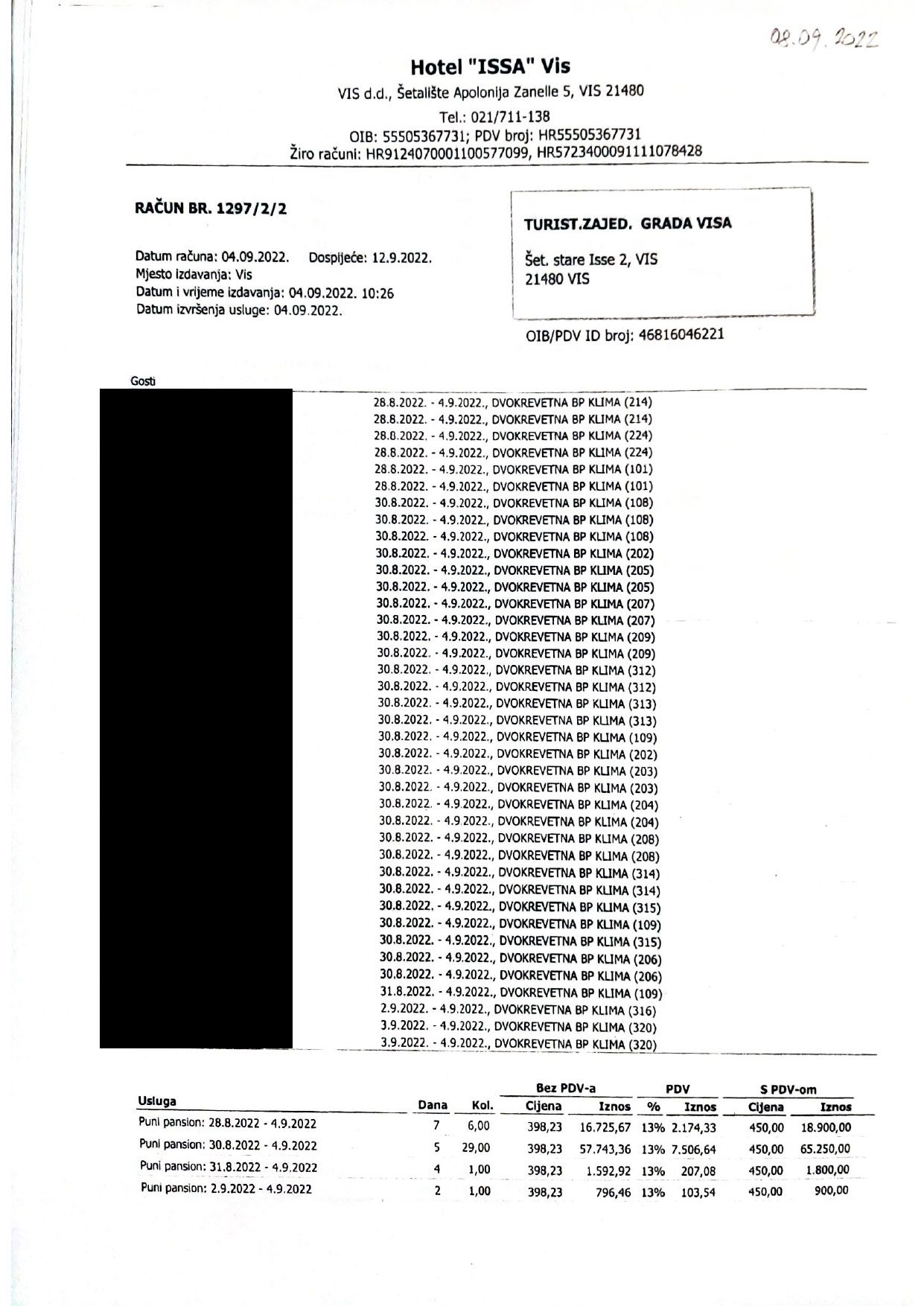 Pitali smo ih obojicu da nam pošalju račune i poslali su. Prema navedenom ispada da su jednak iznos podmirili tvrtka gospođe Fiamengo i Turistička zajednica Grada Visa.