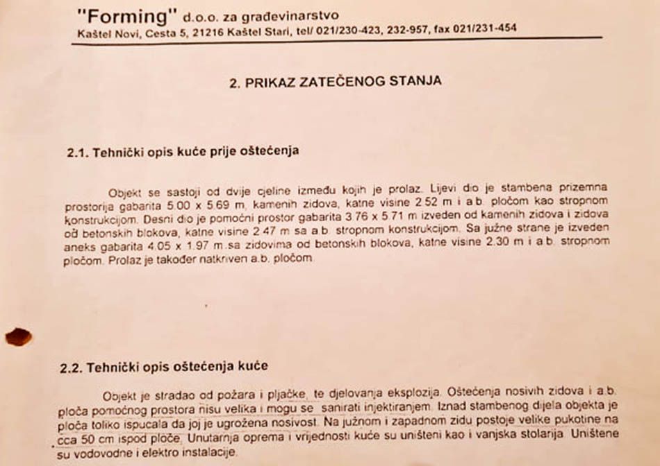 – U ratu nam je kuća srušena, a mi smo bili u progonstvu u Vodicama. Kuća je obnovljena 1999. godine. Neke su zidove trebali srušiti, a ostavili su. Vlaga probija na sve strane, ima napuknutih zidova. Tvrtka iz Kaštela koja je radila obnovu na moje pozive i pisma odgovorila je samo da je obnova prošla i da nemaju ništa s tim – kazuje nam uvodno Ante Ledenko koji je svoju kuću iznutra i snimio.