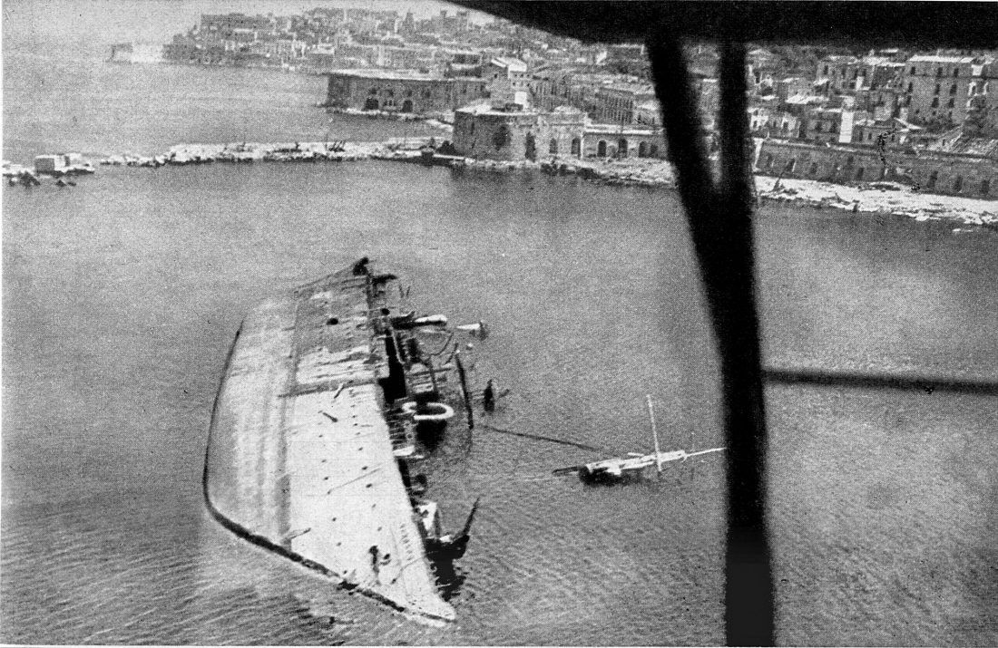 Brod se nalazio u luci Augusta uvečer 10. srpnja 1940. godine kada su luku napala tri zrakoplova Fairey Swordfish koja su torpedima potopila razarač Leone Pancaldo. Quarnaro, koji nije bio cilj izbačenih torpeda, prepoznat je kao – tanker, eksplozija torpeda, koji je eksplodirao na kopnu, uvjerila je britanske pilote da su potopili – tanker!