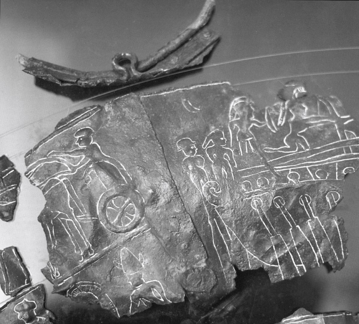 Glavna pomorska snaga na Jadranu tijekom 1. tisućljeća prije Krista bili su Liburni. U 6. i 5. stoljeću Jadran je u sferi interesa Grka, koji ovdje osnivaju i svoje kolonije, a čije trgovačke lađe plove Jadranom. Naravno, sukobi interesa između Liburna, Histra i ostalih ovdašnjih naroda i Grka vjerojatno su postojali, a i gusarstvo, pa čak i kao, nazovimo to tako, gospodarska djelatnost, svakako je nazočno. Iz ovog vremena imamo prikaze brodova i to scene pomorskih bitki. Na kamenoj steli iz Novilare pokraj Pezara, gdje je najvjerojatnije prikazana upravo bitka s Liburnima. Drugi je sukob zabilježen na brončanoj vjedrici pronađenoj u Nezakciju (Vizače kraj Pule), koju datiramo oko 500. godine prije Krista, a prikazana je velika veslarica u sukobu s Histrima. Raniji prikaz brodovlja pronađen je na knemidama (štitnicima za noge) u Glasincu južno od Sarajeva. Prikazana su tri velika broda s kvadratnim jedrom i košem na vrhu jarbola.