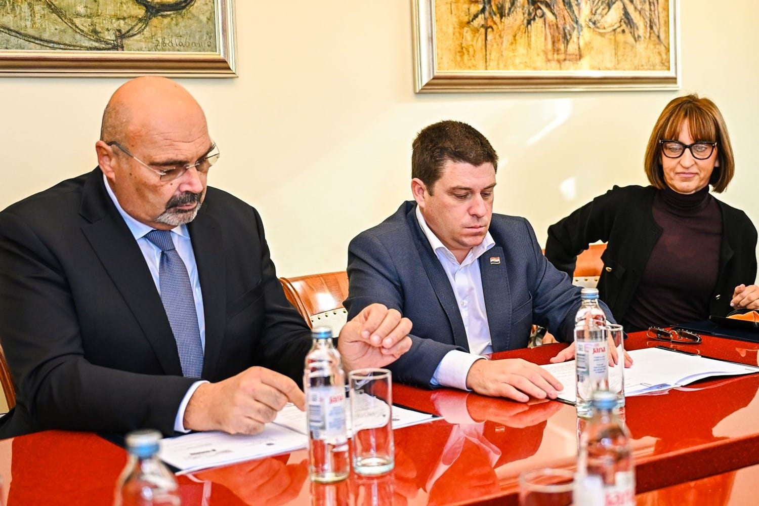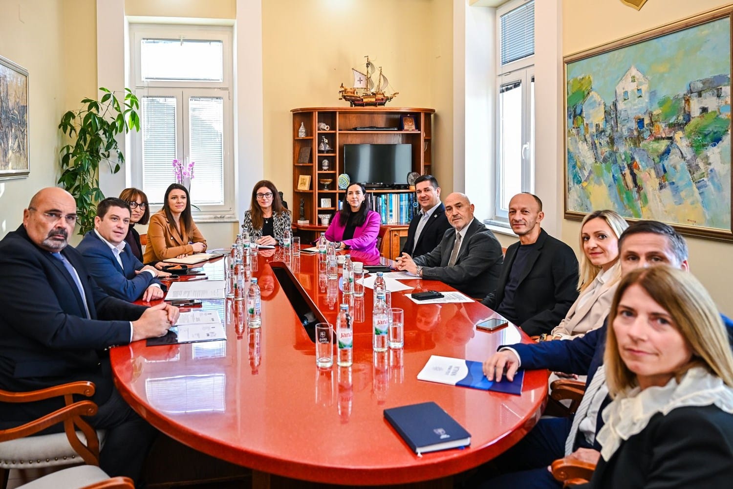 Posjet Novalji započeo je radnim sastankom u uredu gradonačelnika Novalje Ivana Dabe, na kojem se razgovaralo o tijeku realizacije infrastrukturnih projekata na području grada te o planovima daljnjeg razvoja lučke i prometne infrastrukture.