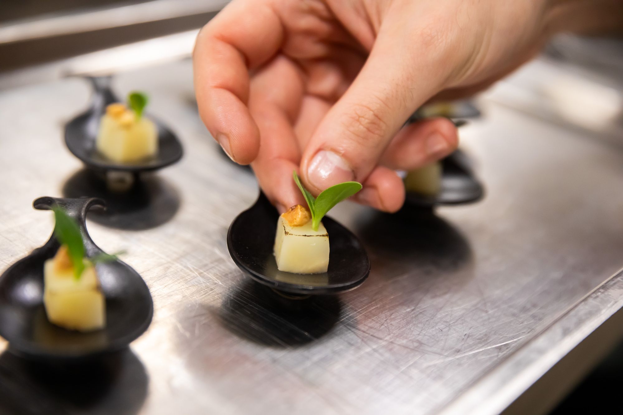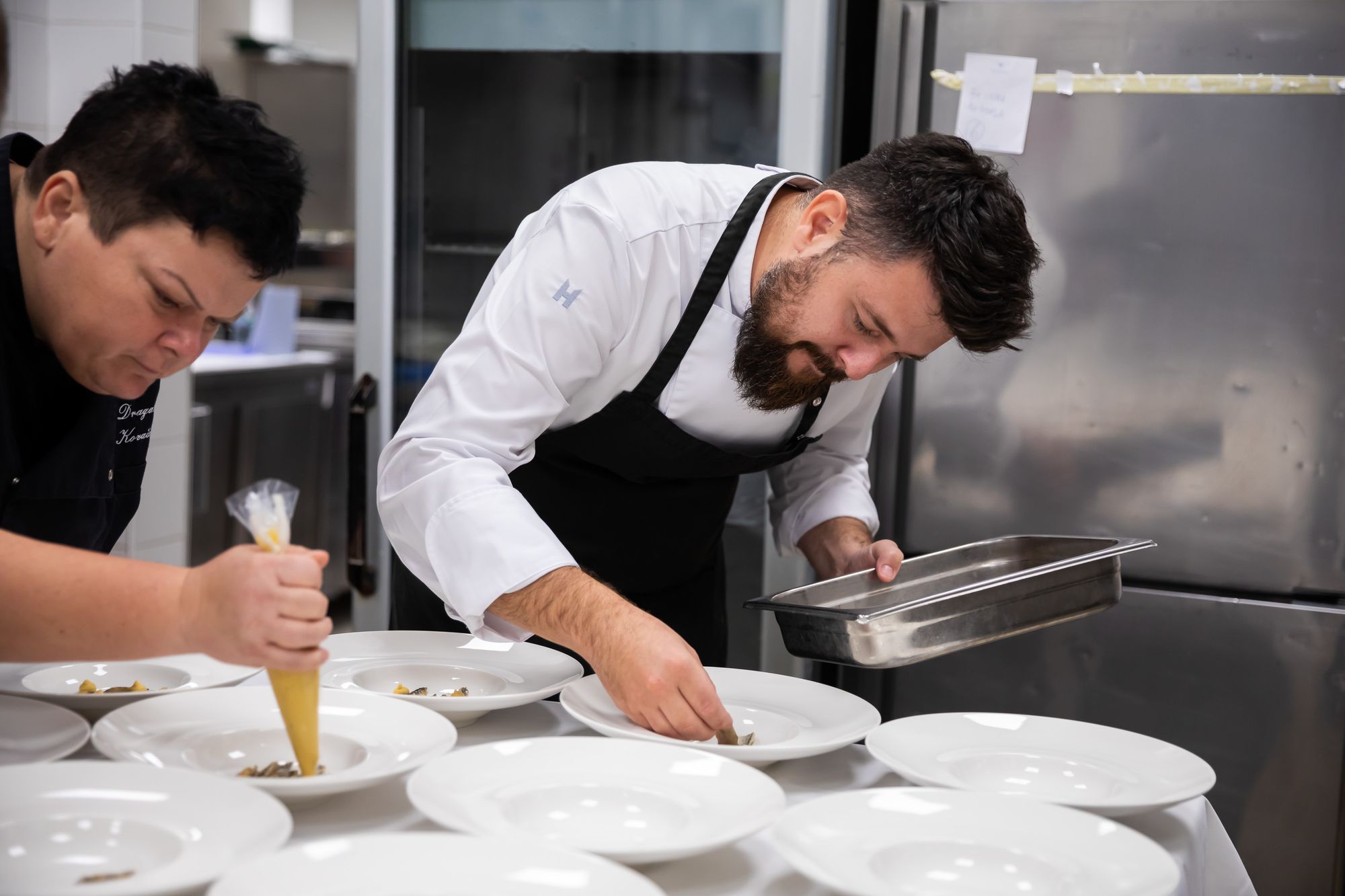 Svaki od tri slijeda večere bio je predstavljen riječima chefa Gorana Hrastovčaka koji je pomno opisao gostima što se nalazi na tanjurima, a potom je uslijedila i prezentacija vina od strane sommeliera Emila Perdeca.