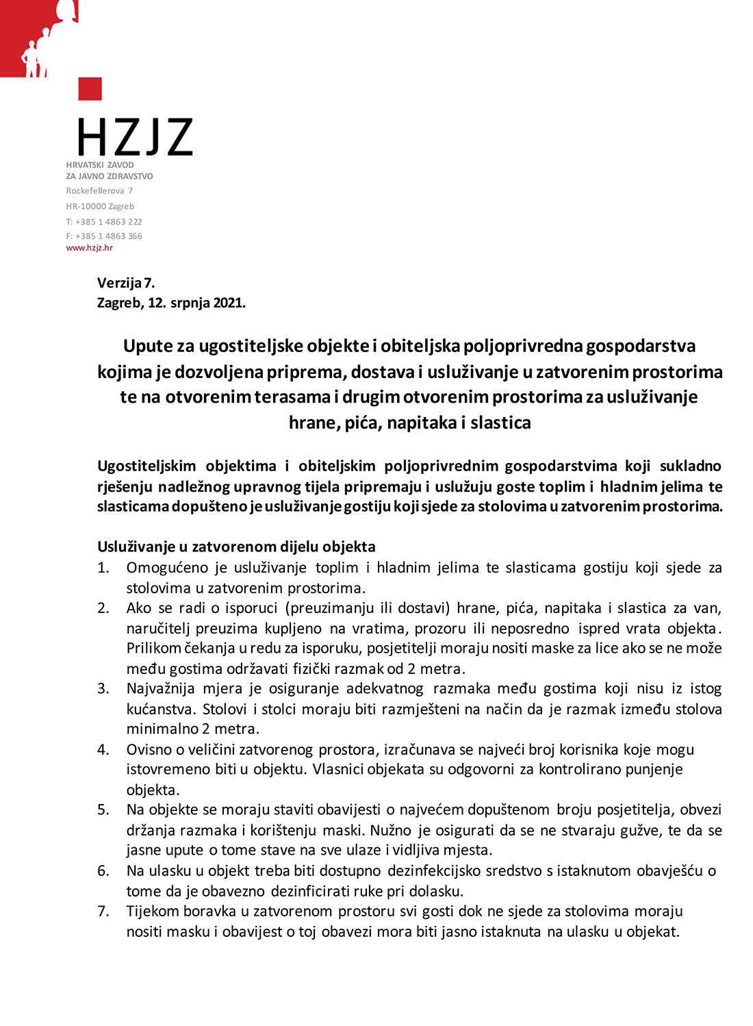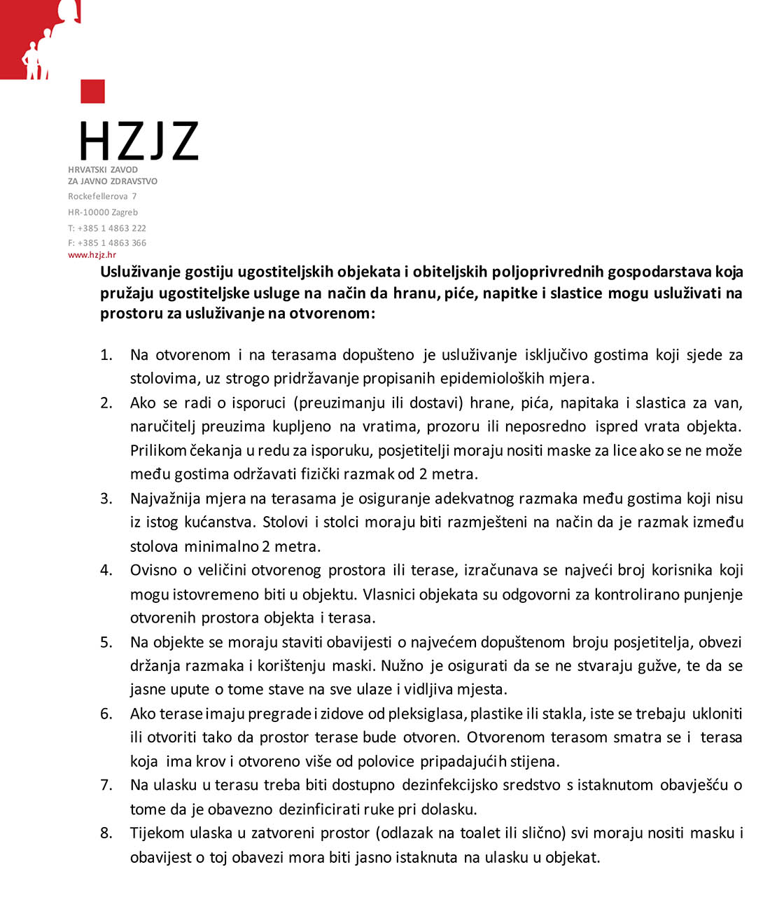 Novu verziju upute Hrvatskog zavoda za javno zdravstvo koja regulira rad ugostiteljskih objekata, pročitajte u nastavku: