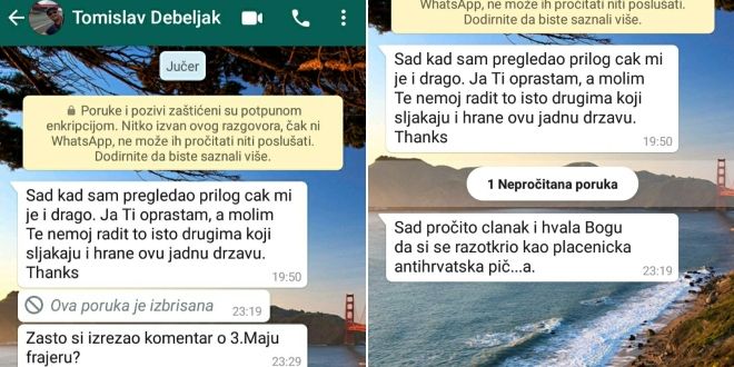 Na žalost, Tomislav Debeljak nije stao na tome. Nakon objave teksta na portalu Dnevnik.hr porukama je nastavio napad na novinara Juriča.