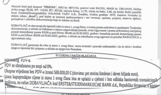 Zanimljivo je da je Odluku o kupnji broda bez javnog natječaja i po hitnom postupku, omogućila Vlada Crne Gore 24. veljače, jer su procijenili da se radi o javnom interesu. No, državna kompanija JP Morsko dobro trajekt Priznu je platila 569 tisuća eura, dakle više od dvostruke cijene, koliko je kompanija ABM Tours platila trajekt Jadroliniji.
