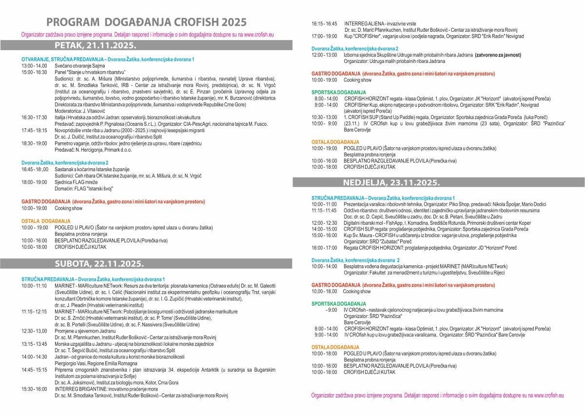Poreč ovih dana postaje epicentar ribarstva i pozicionira se u središte morskog spektakla u kojem se okuplja sve što ribarstvo čini posebnim. Tijekom tri dana, posjetitelje očekuje vrhunski izlagački, edukativni, gastronomski i sportski program, kao i bogat sadržaj za najmlađe čime će se nastaviti tradicija stvaranja nezaboravnih uspomena za sve generacije. Crofish kao jedini specijalizirani događaj takve vrste u Hrvatskoj i šire, okuplja ribare, znanstvenike, institucije i stručnjake iz Hrvatske, Slovenije, Crne Gore i Italije, na što je organizator, Obrtnička komora Istarske županije, iznimno ponosna.
