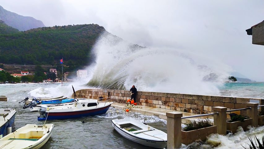 Mjestimični udari juga i južnog vjetra od 35-55, mjestimice i do 70 čvorova, a od sredine dana prvo na sjevernom Jadranu, a zatim i drugdje jugozapadnog vjetra 35-45 čvorova. More 5, ponegdje i 6 i to uglavnom još danas prema otvorenome. Mjestimice nevere.