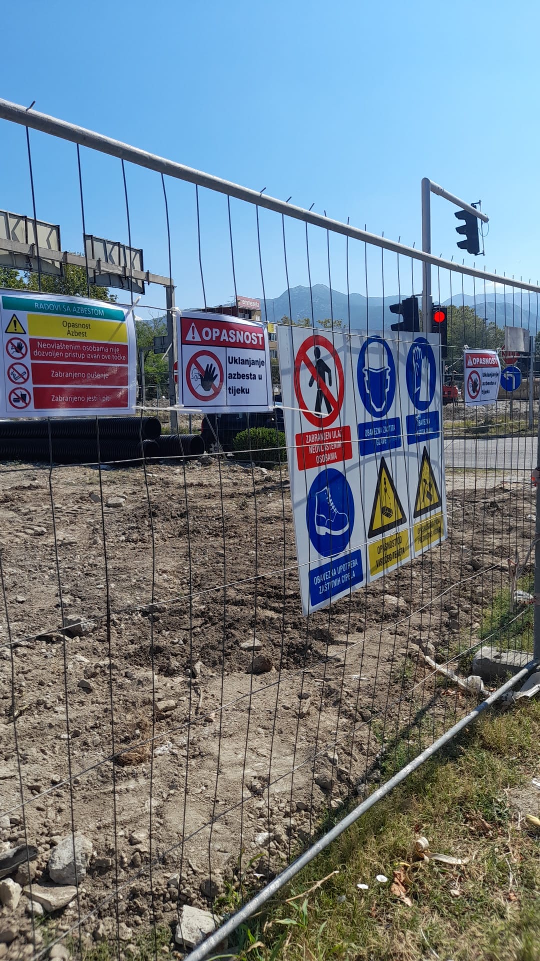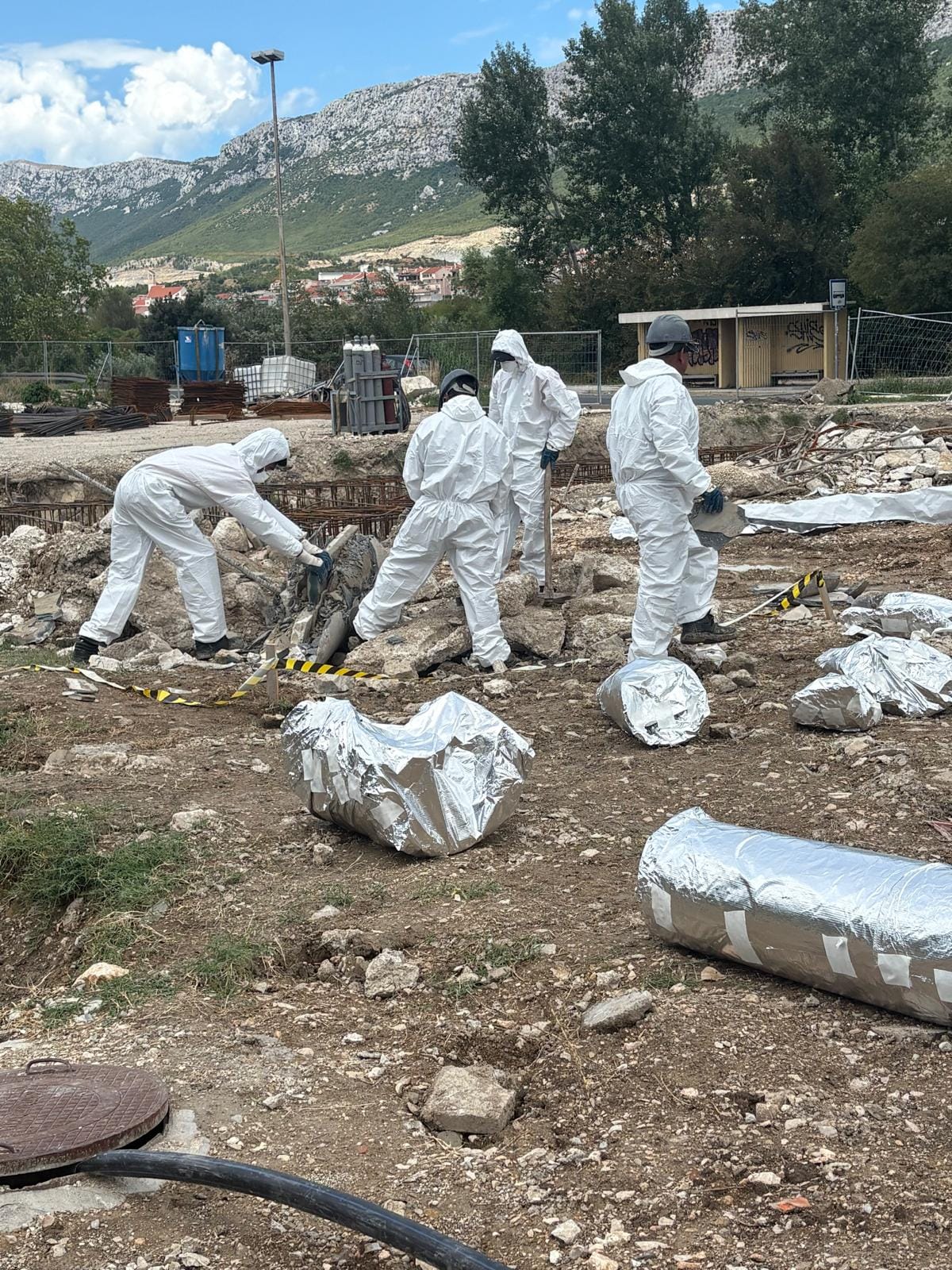 Radnici, stranog podrijetla, potpuno nezaštićeni, priručnom željeznom šipkom na otvorenom lome azbestnu cijev i to uz prometnicu i otvorenu infrastrukturu koja se upravo gradi.
