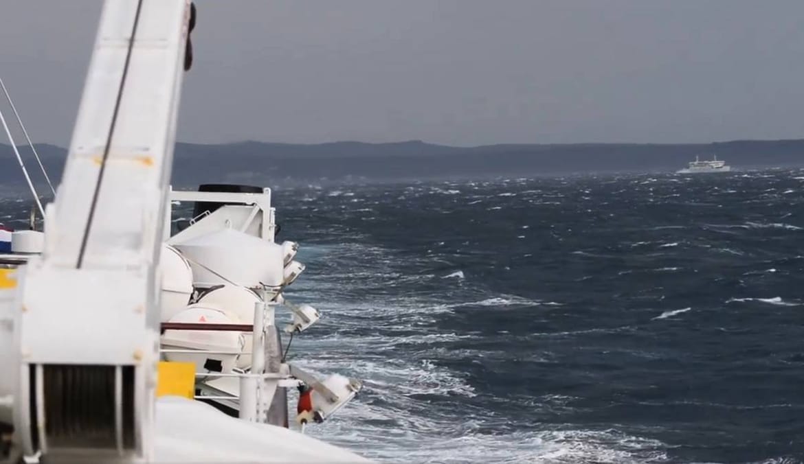 Za cijeli Jadran na snazi je narančasto upozorenje na vjetar– očekuje se olujno jugo, u večernjim satima u okretanju na jugozapadni vjetar. S trajekta koji se jutros probijao do otoka Raba, Vinodolmet objavio je ove snimke: