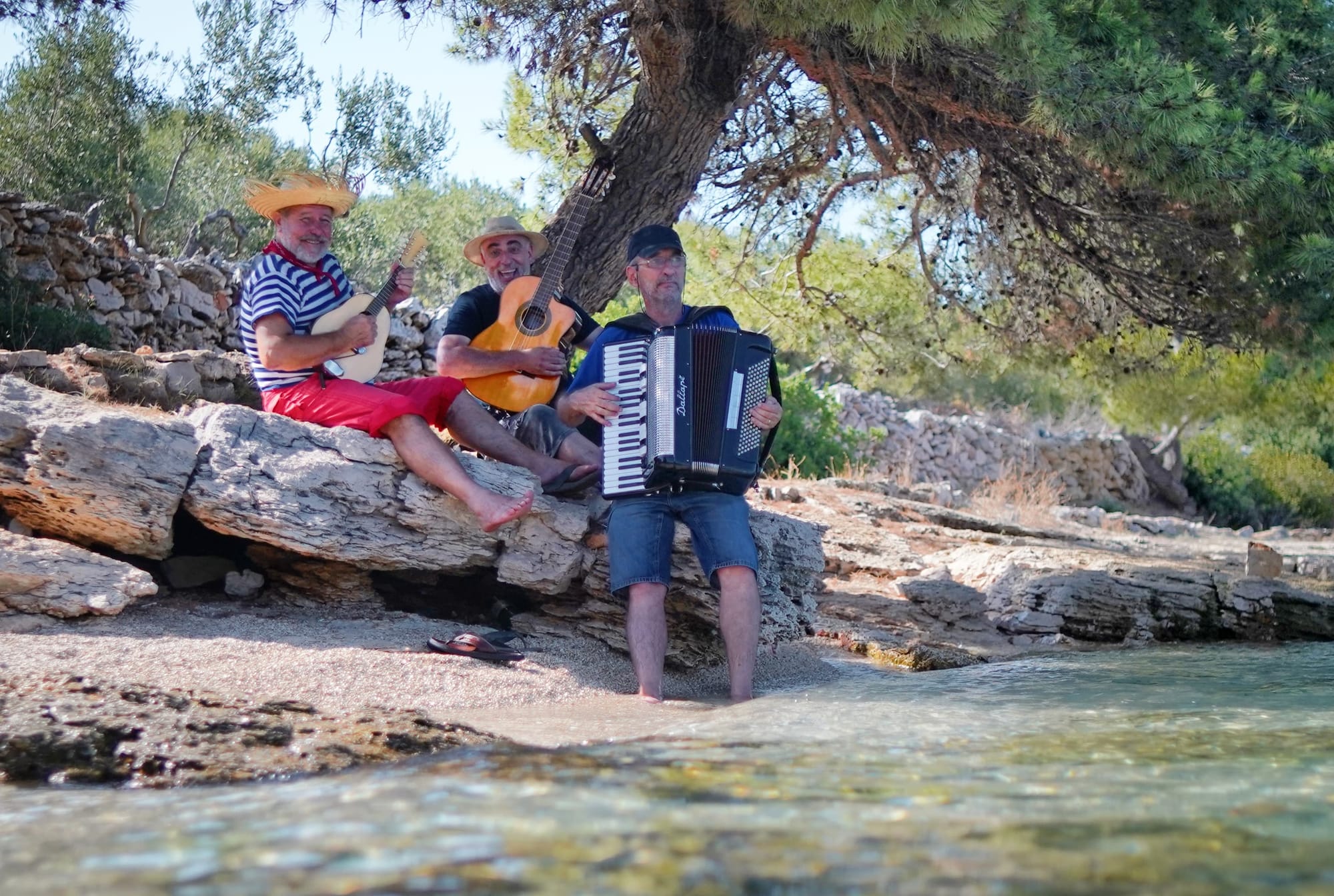 Trio Gušt je u petak na atraktivnim lokacija otoka Žut na Kornatima te u Betini na Murteru snimao video spot za pjesmu Dite mora s kojom će 24. kolovoza nastupiti na Dalmatinskoj šansoni u Šibeniku.