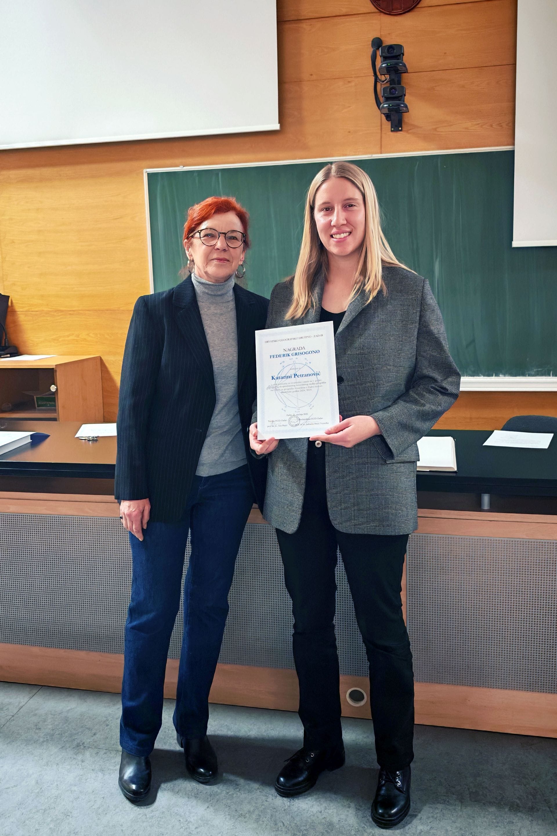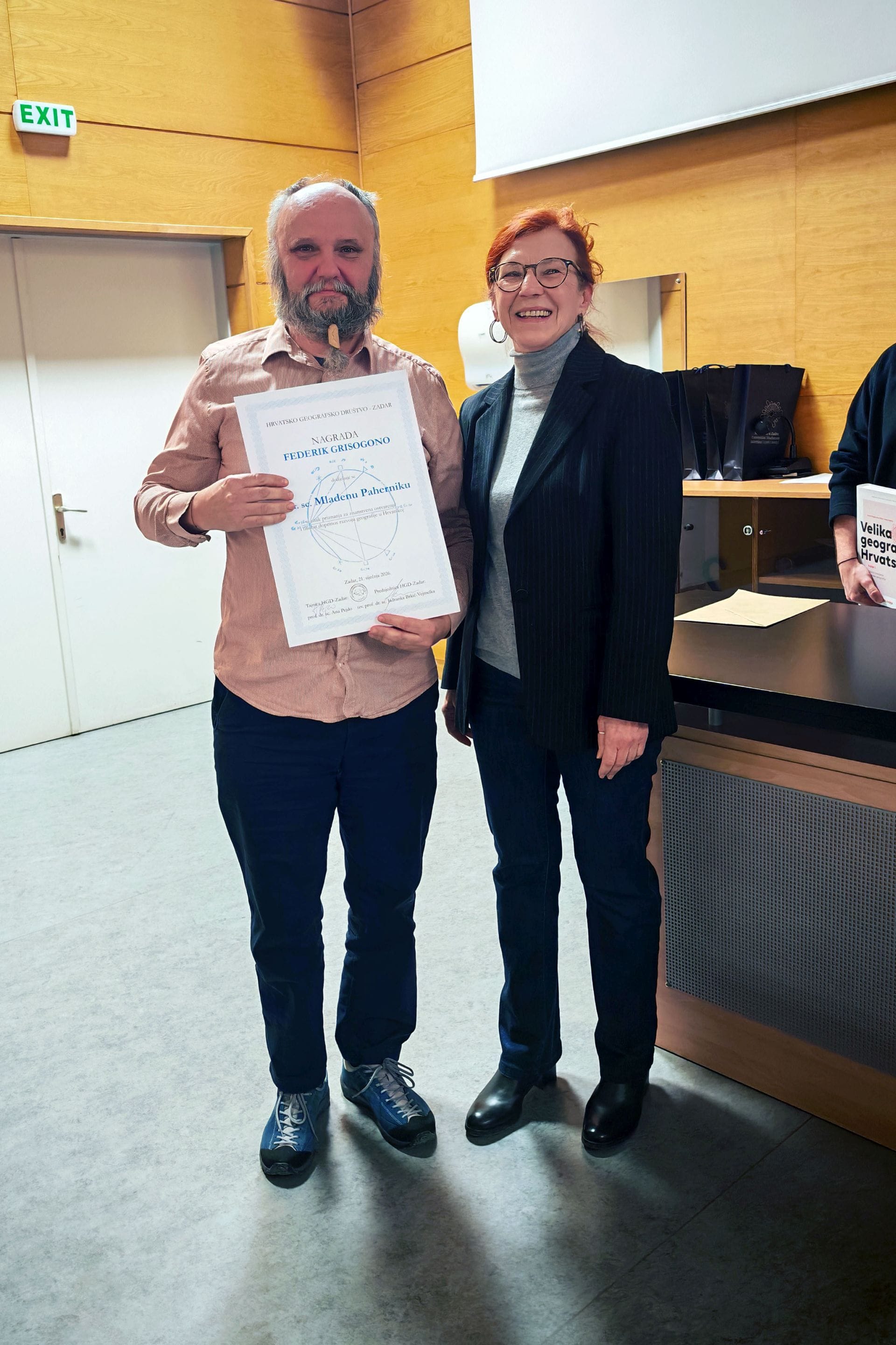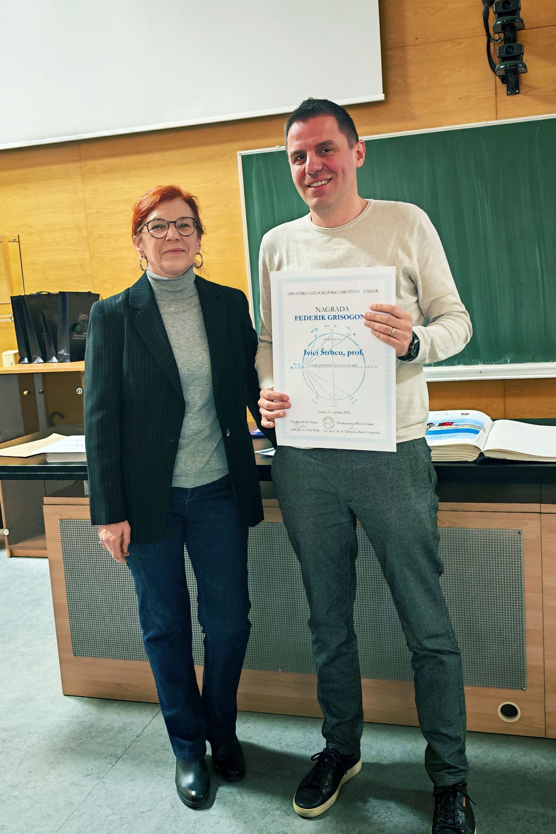 ZADAR - Godišnja Skupština Hrvatskog geografskog društva - Zadar održana je u srijedu, 21. siječnja. Na skupštini je uručena godišnja nagrada Federik Grisogono u tri kategorije: za iznimne rezultate tijekom studiranja u akademskoj godini 2024./2025., za nastavni rad i za znanost. Pohvalnice su uručene učenicima koji su osvojili prva mjesta na županijskom natjecanju iz geografije 2025. godine i Međužupanijskoj smotri GLOBE 2025. Nagradu Federik Grisogono za uspjeh tijekom studiranja na Odjelu za geografiju Sveučilišta u Zadru dobili su Filip Šapina, Jana Nefat Ružić i Katarina Petranović.