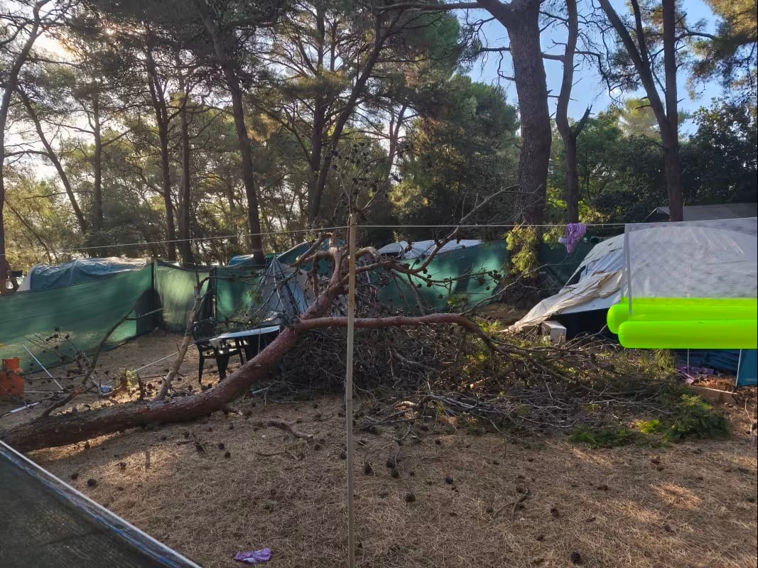 PULA - Jutros oko 6 sati na Fratarskom otoku palo je stablo na kamp. Srećom, u tom trenutku u šatorima nije bilo nikog, i izbjegnuta je velika nesreća.