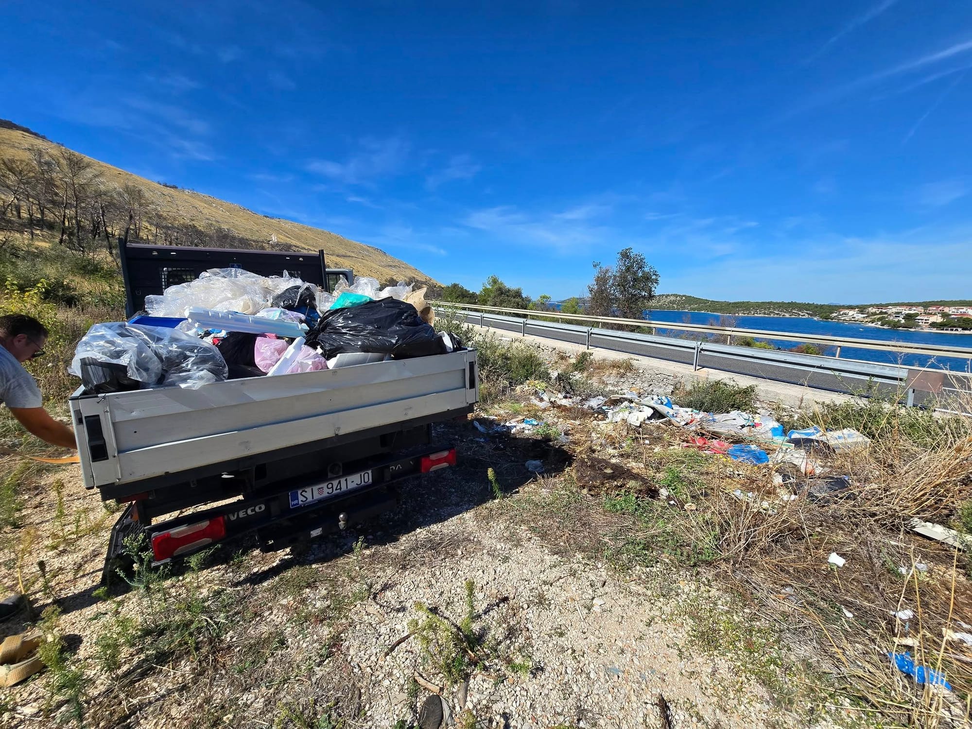 - Ima sigurno sva miseca, ako ne i više da ovo smeće stoji u prirodi, uz cestu... Nismo više mogli gledat i zamolija san prijatelja Tonija koji ne zna di će od posla i obaveza, da dođe kamionom i svojim rukama, zajedno s nama kupi tuđa govna, leševe, pelene i sav otrov koji je ode...