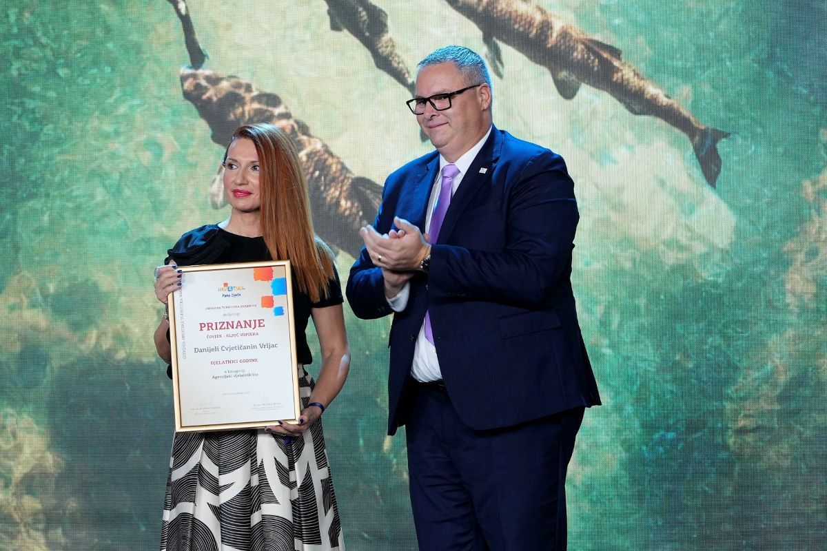 ROVINJ - Sinoć je u Rovinju održana završna svečana večer Dana hrvatskog turizma u sklopu kojih su dodijeljene Godišnje hrvatske turističke nagrade, odnosno nagrade za najbolje u turizmu Hrvatske u 2023. godini. Pred više od 1200 sudionika turističkom destinacijom godine, odnosno novim šampionom hrvatskog turizma proglašen je Dubrovnik, najboljim turističkim događajem godine proglašeni su Đakovački vezovi, dok je u kategoriji Ljudi u turizmu dodijeljena Godišnja nagrada „Anton Štifanić“ – tvrtke/ustanove/udruge Javnoj ustanovi Baraćeve špilje za upravljanje zaštićenim prirodnim vrijednostima na području općine Rakovica.