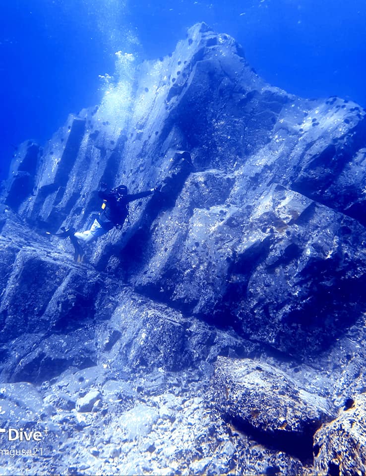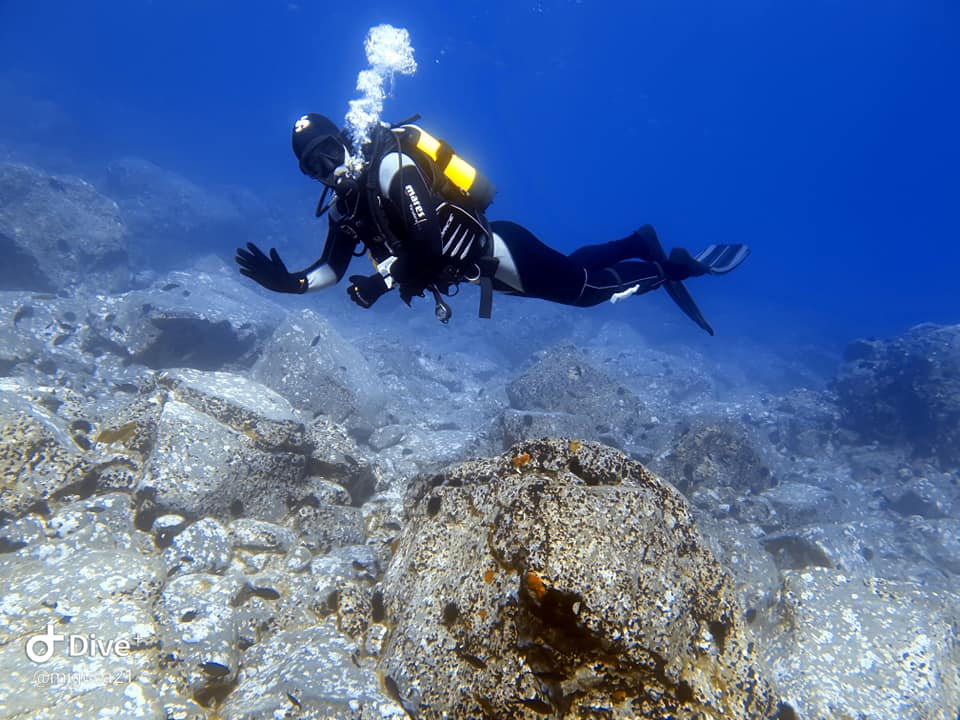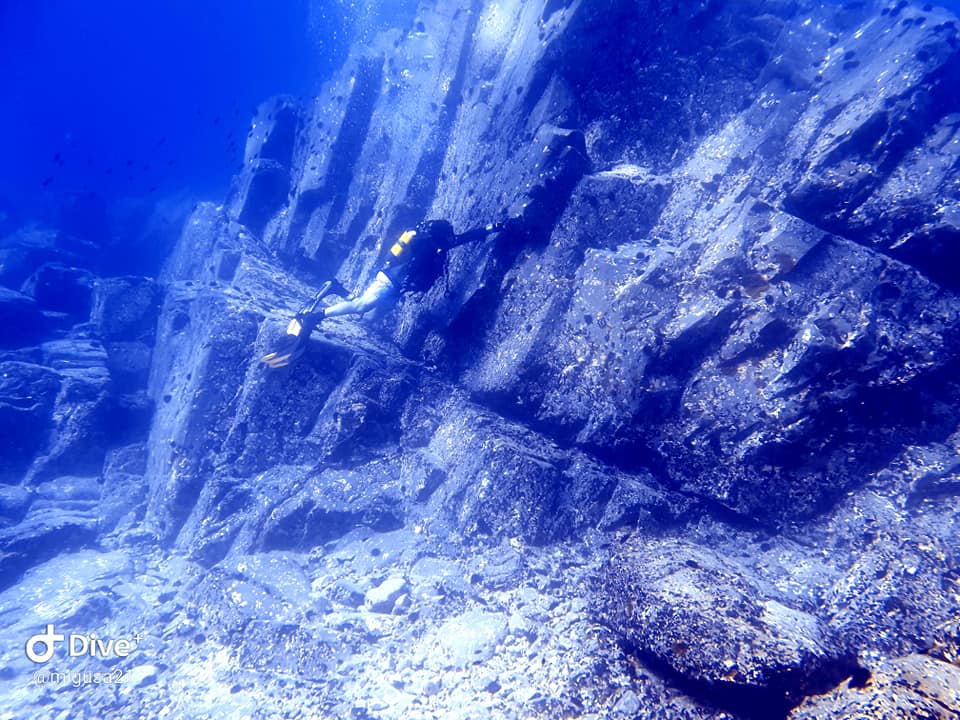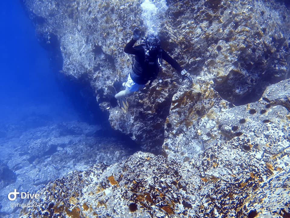 Kažem, većini nezanimljivo jer do dvadesetak metara dubine ta variijanta sivo crnih stijena i velikih gromada izbačenih iz utrobe , kao i oblutci zabetonirani u toj magmi djeluju dosadno no meni izuzetno zanimljivo jer volim stijene i svjestan njihove starosti i vremena kada su nastajale ostajem zadivljen prizorima i ne smeta mi ta varijanta sivo-crno.