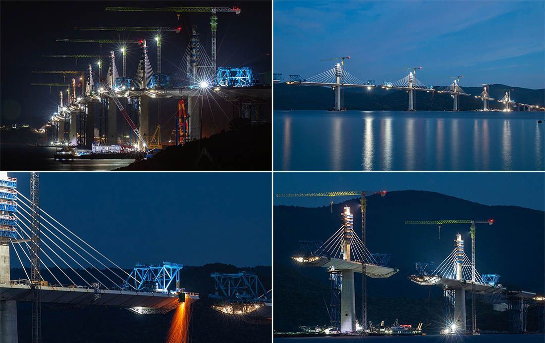 Prizori koje je snimio poznati splitski fotograf Goran Leš za Dalmaciju danas idu u potpunosti idu u prilog tome, jer je fantastične kadrove napravio noću, kad kineski radnici, konzorcija China Road and Bridge Corporation rade i svoje treće i četvrte smjene.