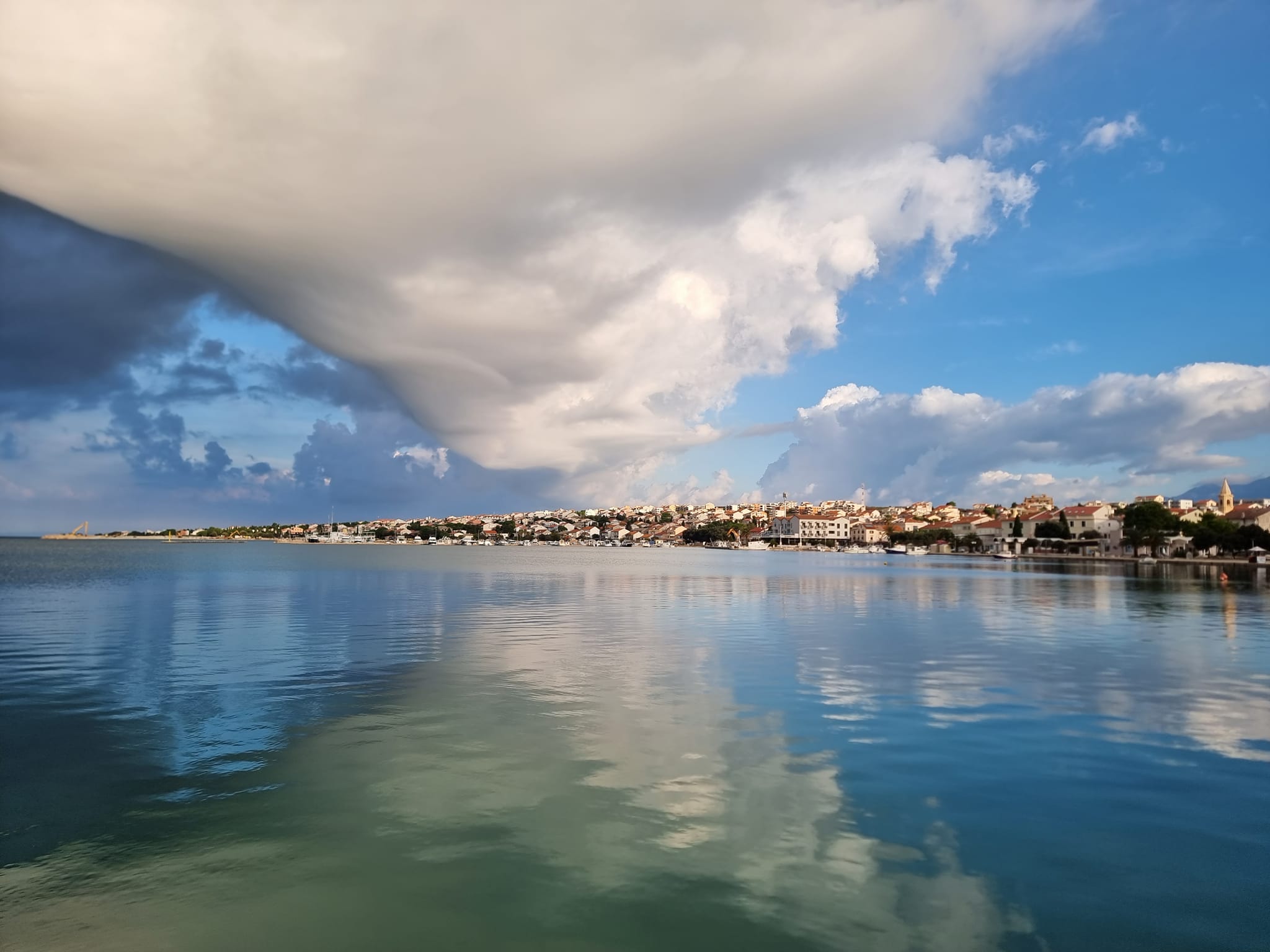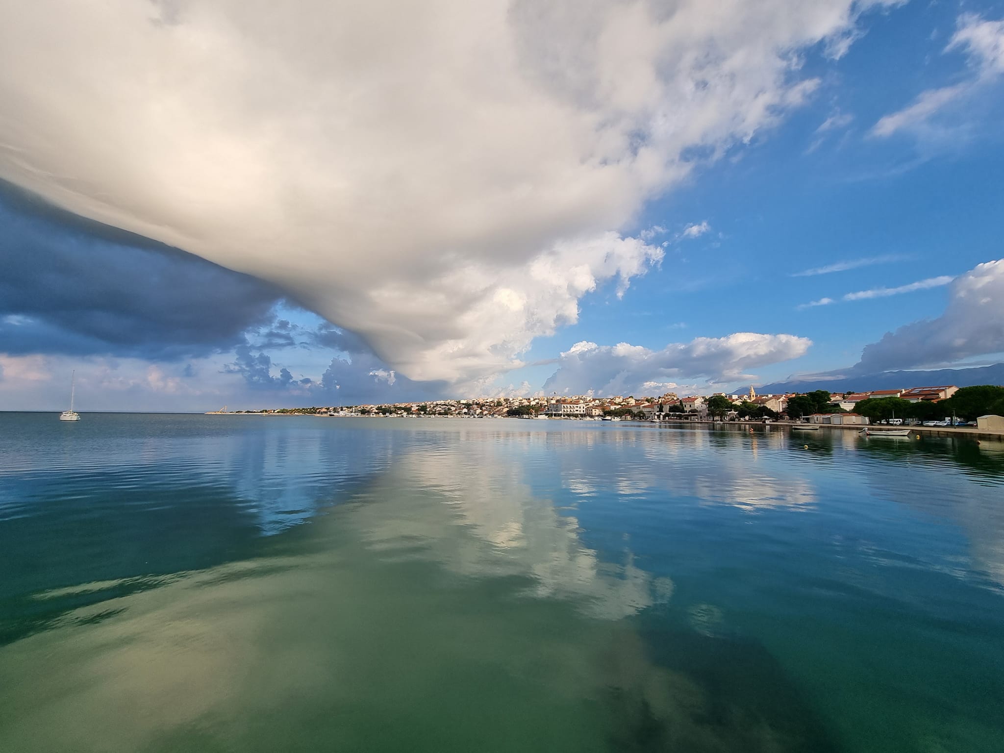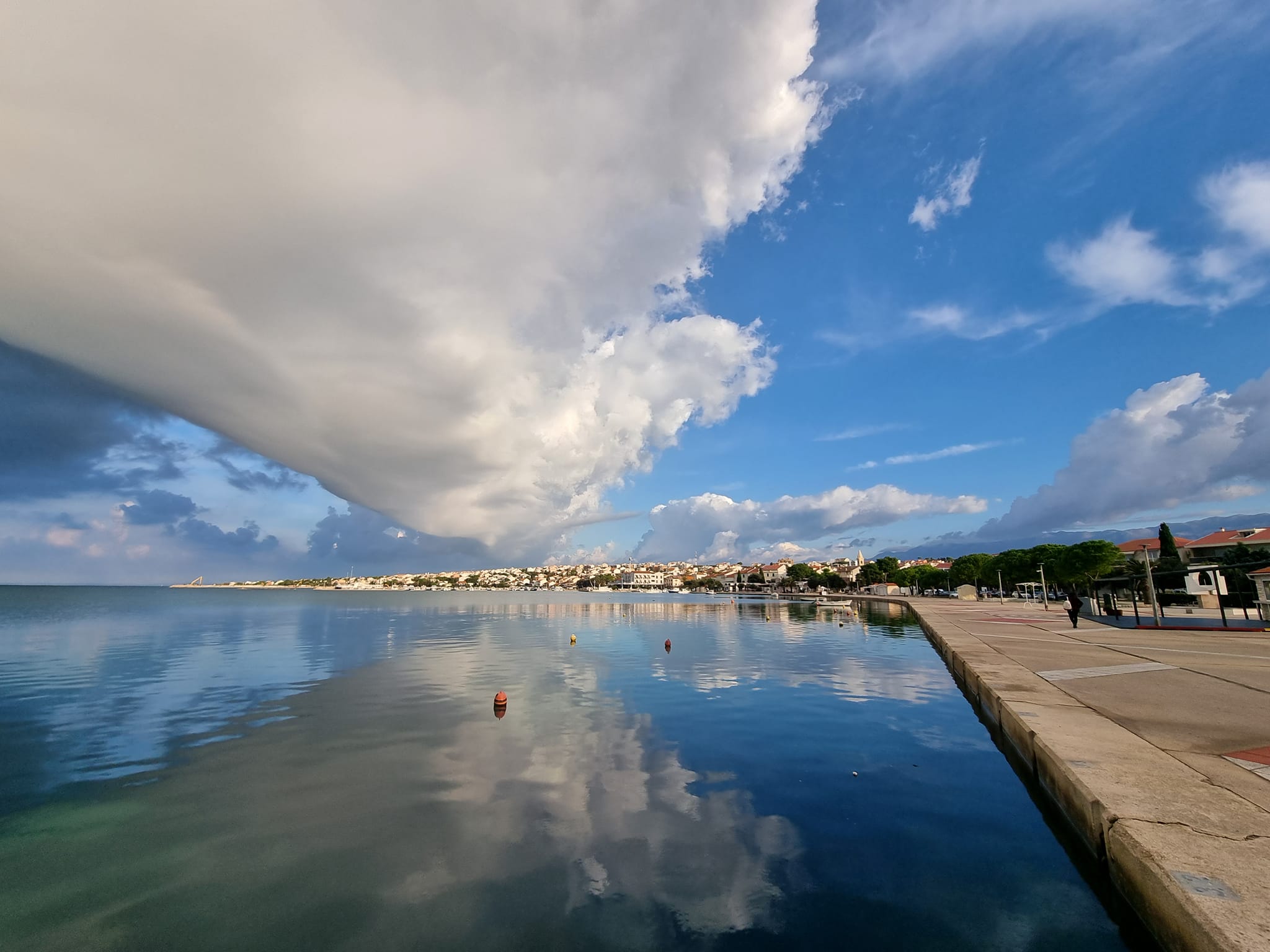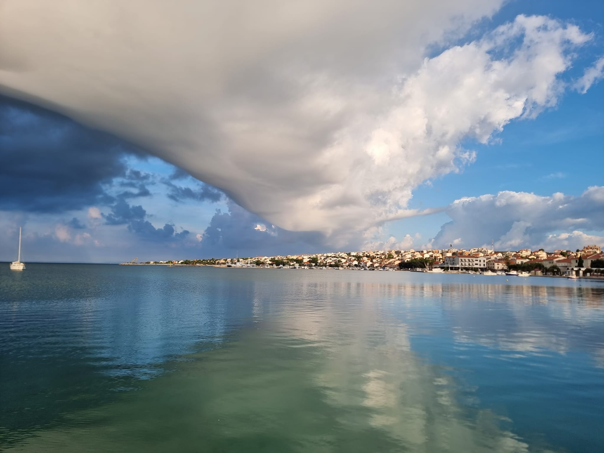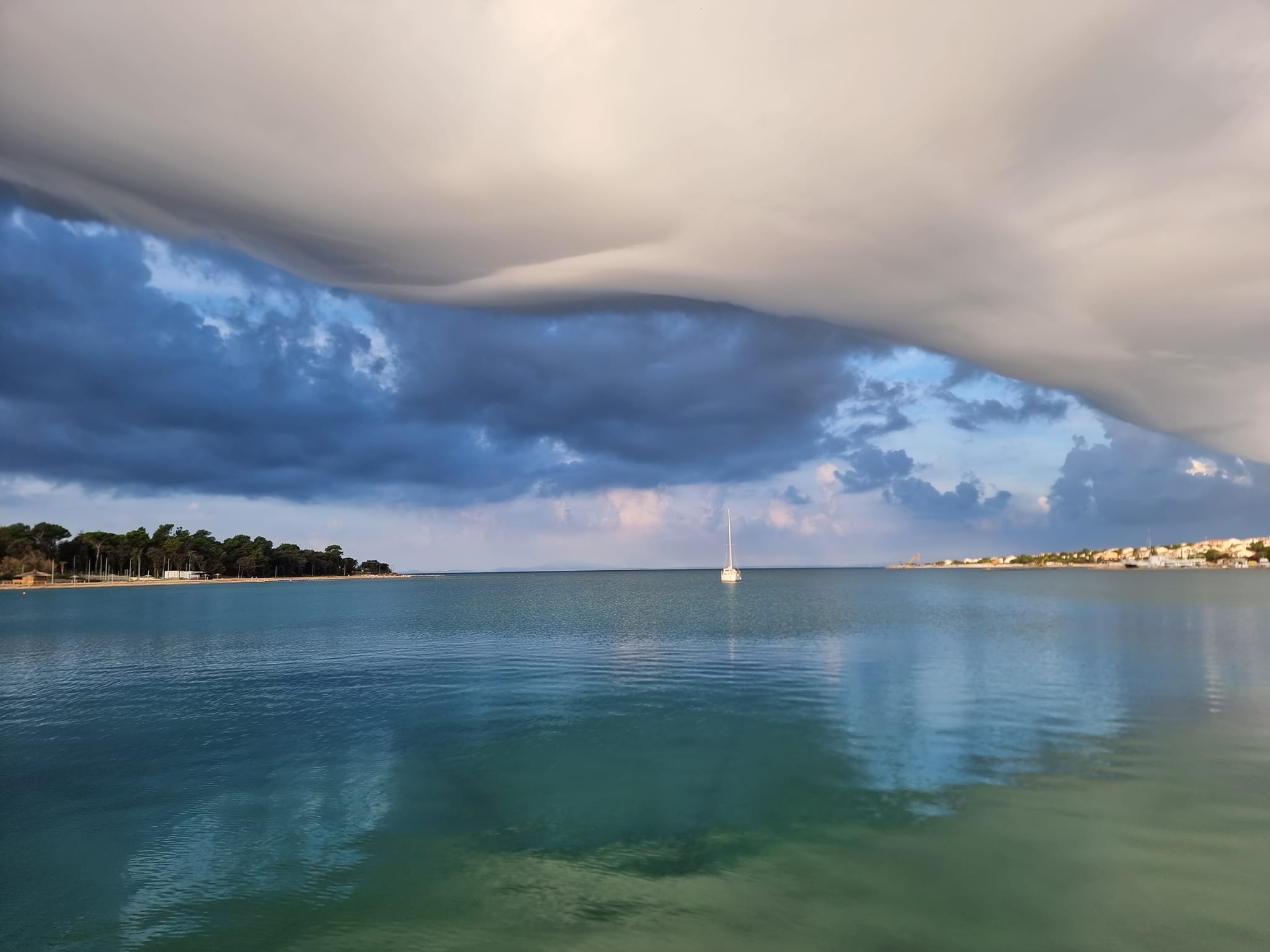 NOVALJA - Iznad Novalje na otoku Pagu, jučer su snimljeni doista neobični oblaci, koji podsjećaju na deku koja je pokrila ili bolje reći otkrila nebo iznad otoka. Doznali smo i o kakvim oblacima se radi.