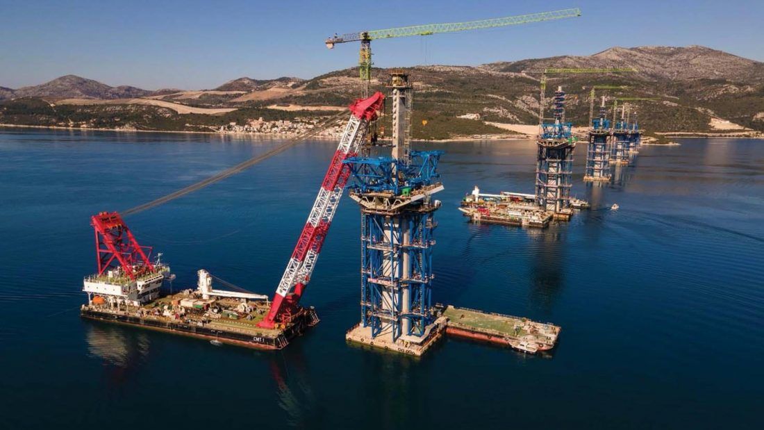 Na gradilištu Pelješkog mosta do kraja veljače postavljeno je 49 od ukupno 165 segmenata čelične rasponske konstrukcije. Sredinom veljače je između morskog stupnog mjesta S3 i kopnenog S2 postavljen segment ukupne duljine 52 metra i težak 581 tonu, navodi dnevnik.