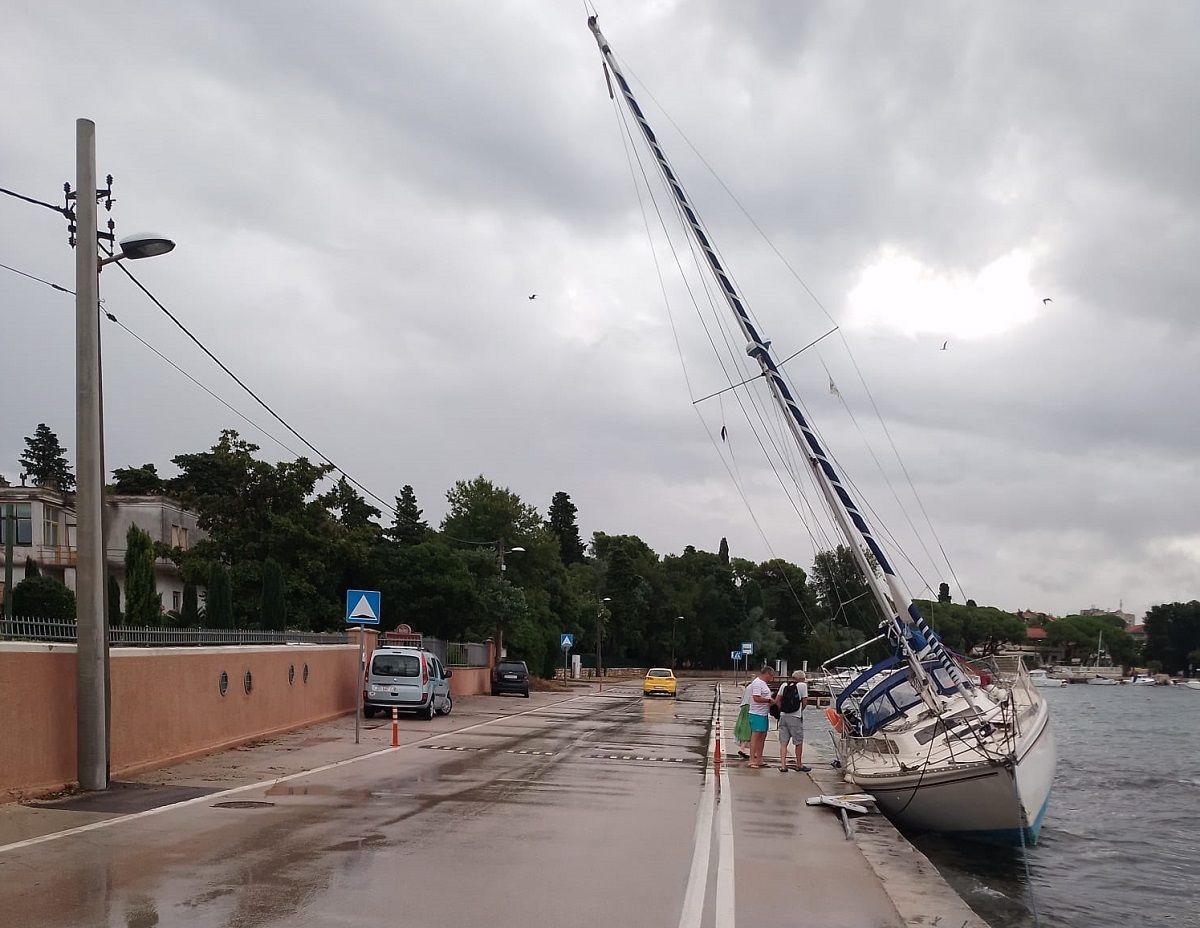 Oni nešto pametniji i iskusniji, na vrijeme su sklonili i privezali plovila, no ne i vlasnik ili pak unajmitelj ove jedrilice koja je završila u plitkoj uvali kod zadarske Sfinge, koja za vrijeme bonace izgleda pitomo, no ustvari je najgore mjesto za privezati plovilo, jer je plitka i potpuno nezaštićena na sve zapadne vjetrove.