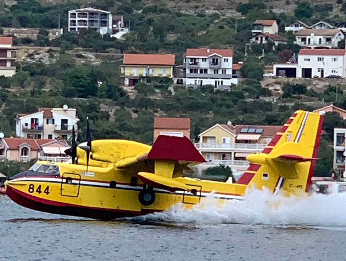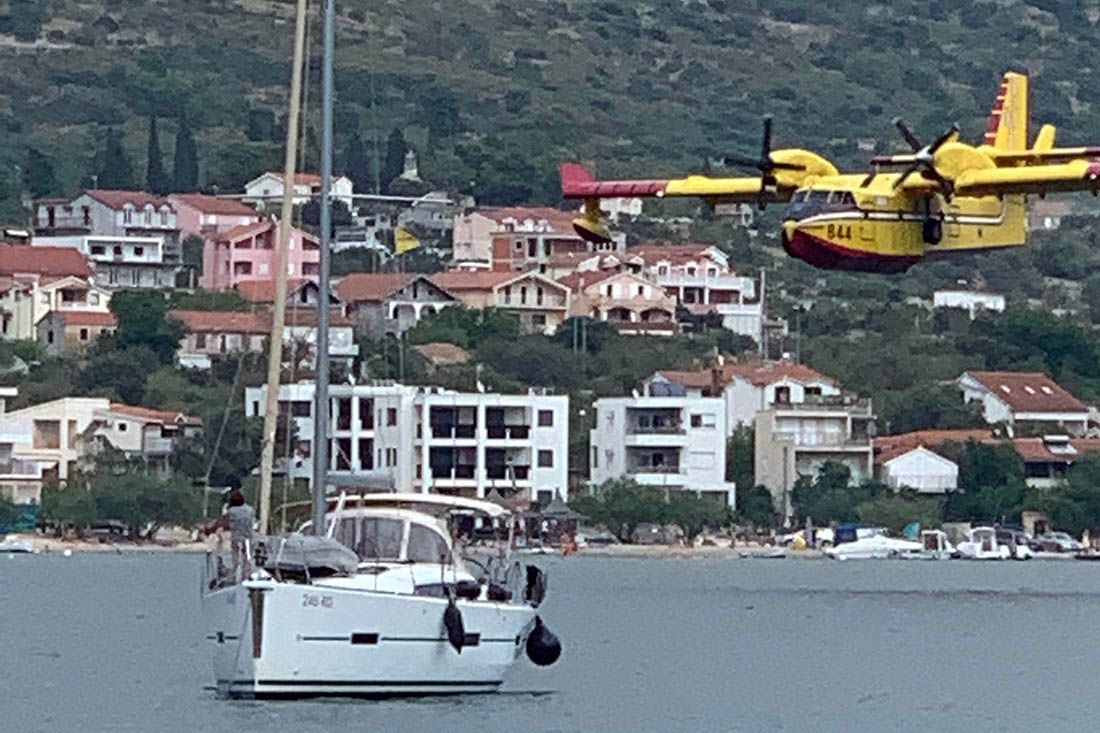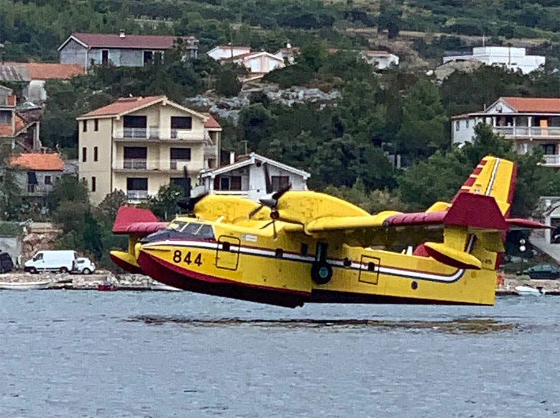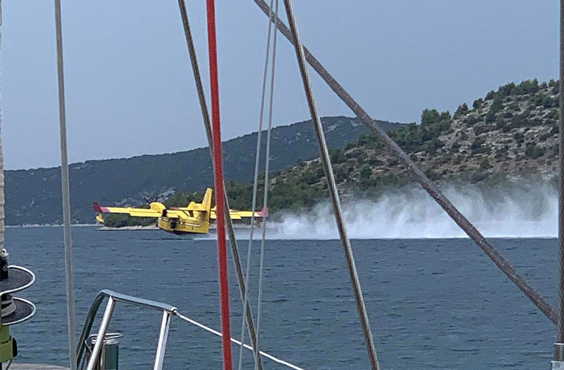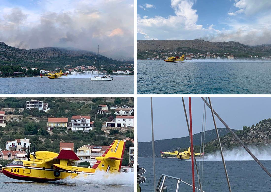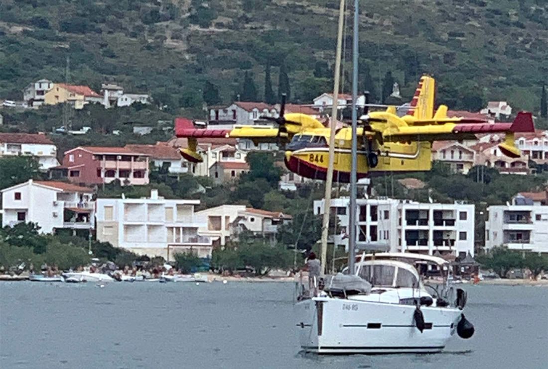 – Vidi se da je požar prešao vrh brda ali su ga tu zaustavili prema mjestu i magistrali. Sve je u dimu i kanaderi su spasili stvar. Evo, lete vrlo blizu nas i more skupljaju na niti 50 metara udaljenosti – ispričao je naš suradnik Gordan Smadilo koji je sa svojom jedrilicom upravo u uvali kod Grebaštice.