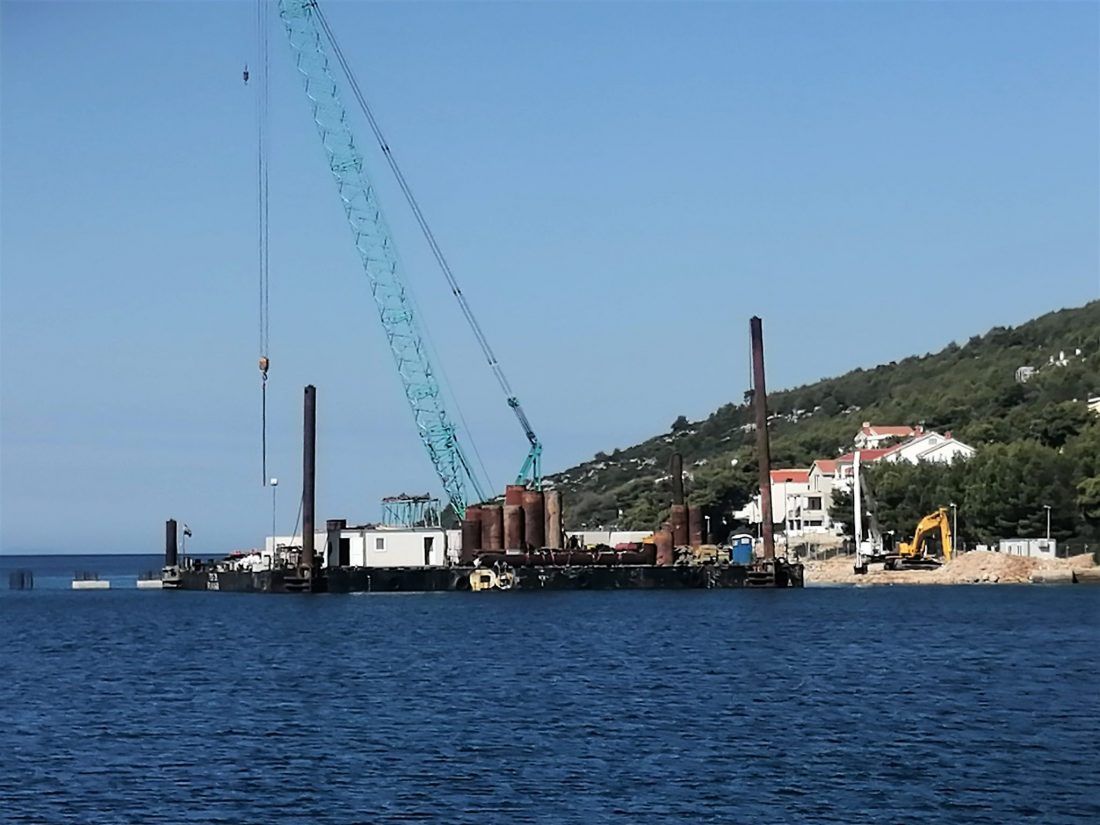 Naime, podmorski dio konstrukcije se sastoji od ukupno osamnaest pilota projektiranih u dva reda na koje se postavlja konstrukcija pristanišnog gata tlocrtnih dimenzija 55,0×6,0 m. Betoniranje svih pilota trebalo je završiti do kraja kolovoza nakon čega slijede radovi izgradnje i postavljanja elemenata gata.