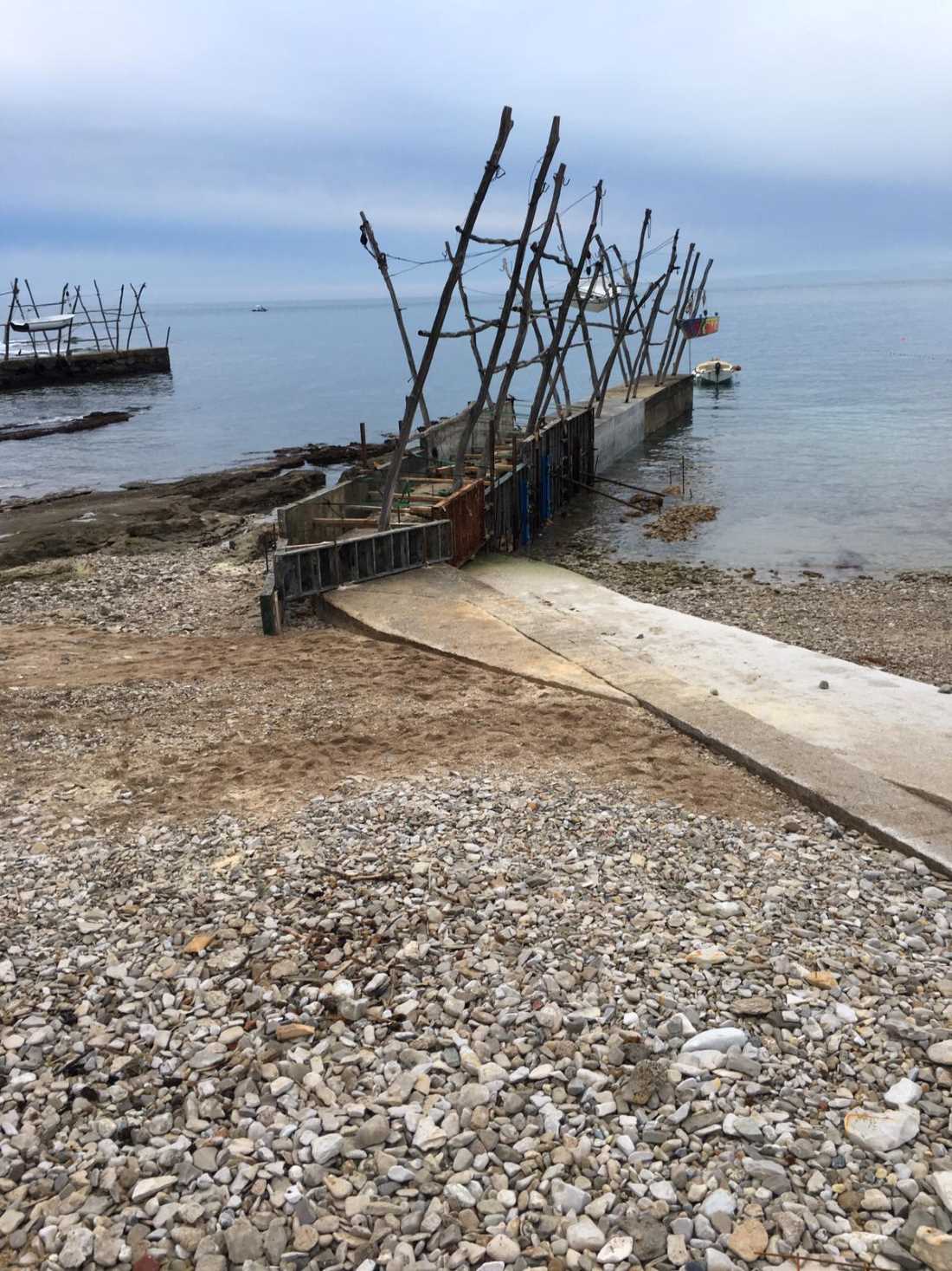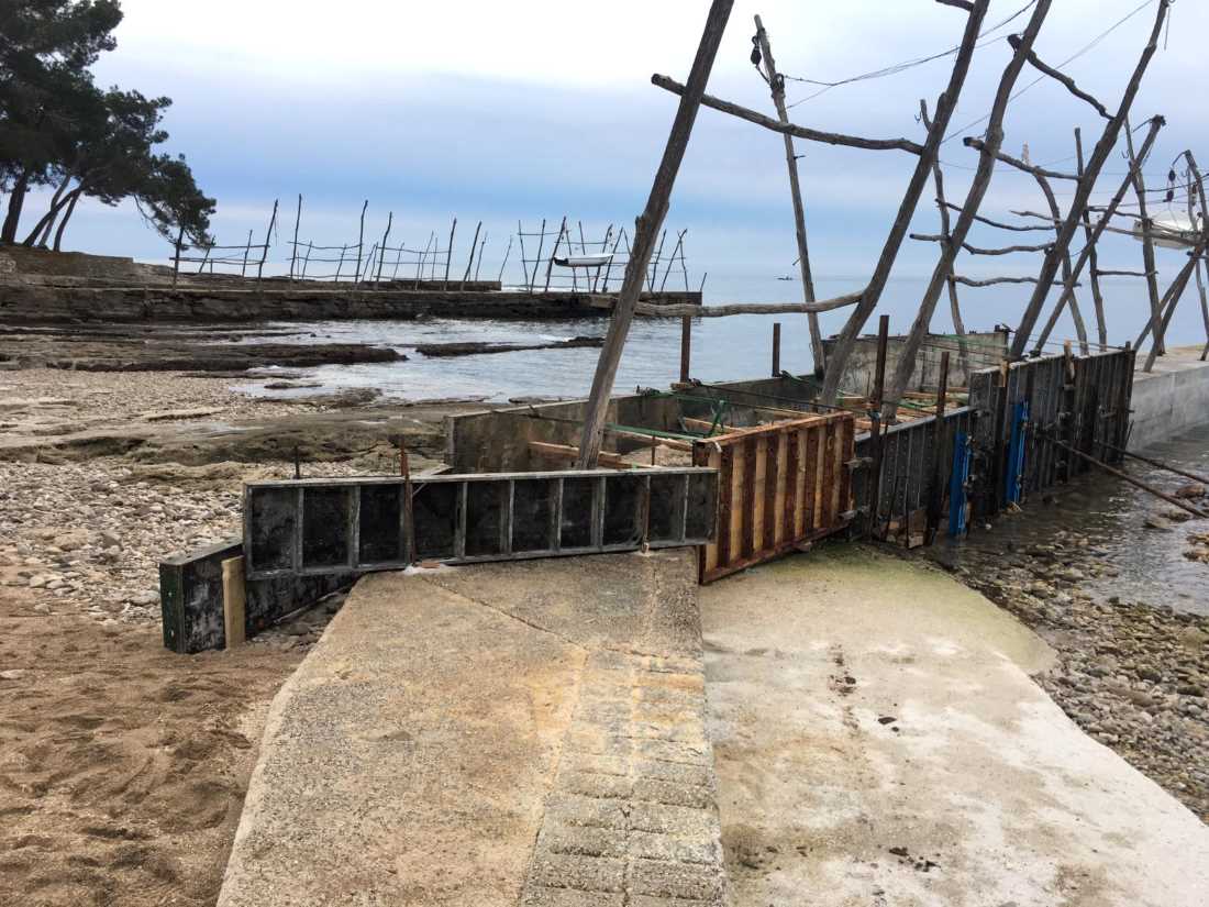 Zapravo, osim što je neobjašnjivo proširen, prvi mol još ima kolce od bagrema stalno u vodi, zbog čega će s vremenom pri dnu neminovno istrunuti. A da ne govorimo o armiranom betonu, materijal koji apsolutno nije korišten za gradnju molova, već su oni, podsjećamo, bili izgrađeni na jednostavan način i sa skromnim materijalima koji su pronađeni u okolišu. U više navrata produženi, molovi su najčešće slijedili prirodni smjer stijene, a kad bi stijeni bio kraj (ako bi joj bio kraj), produžili bi je miješanjem žbuke i kamenih blokova, izvučenih izravno s plaže.