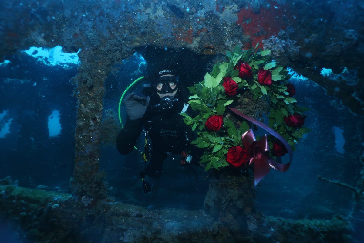 U sjećanje svih žrtava potonuća već su tradicionalno položili vijenac na provu broda koji se, i dalje uspravno kao da plovi, nalazi na dubini od 40 metara na 9 milja od Rovinja.