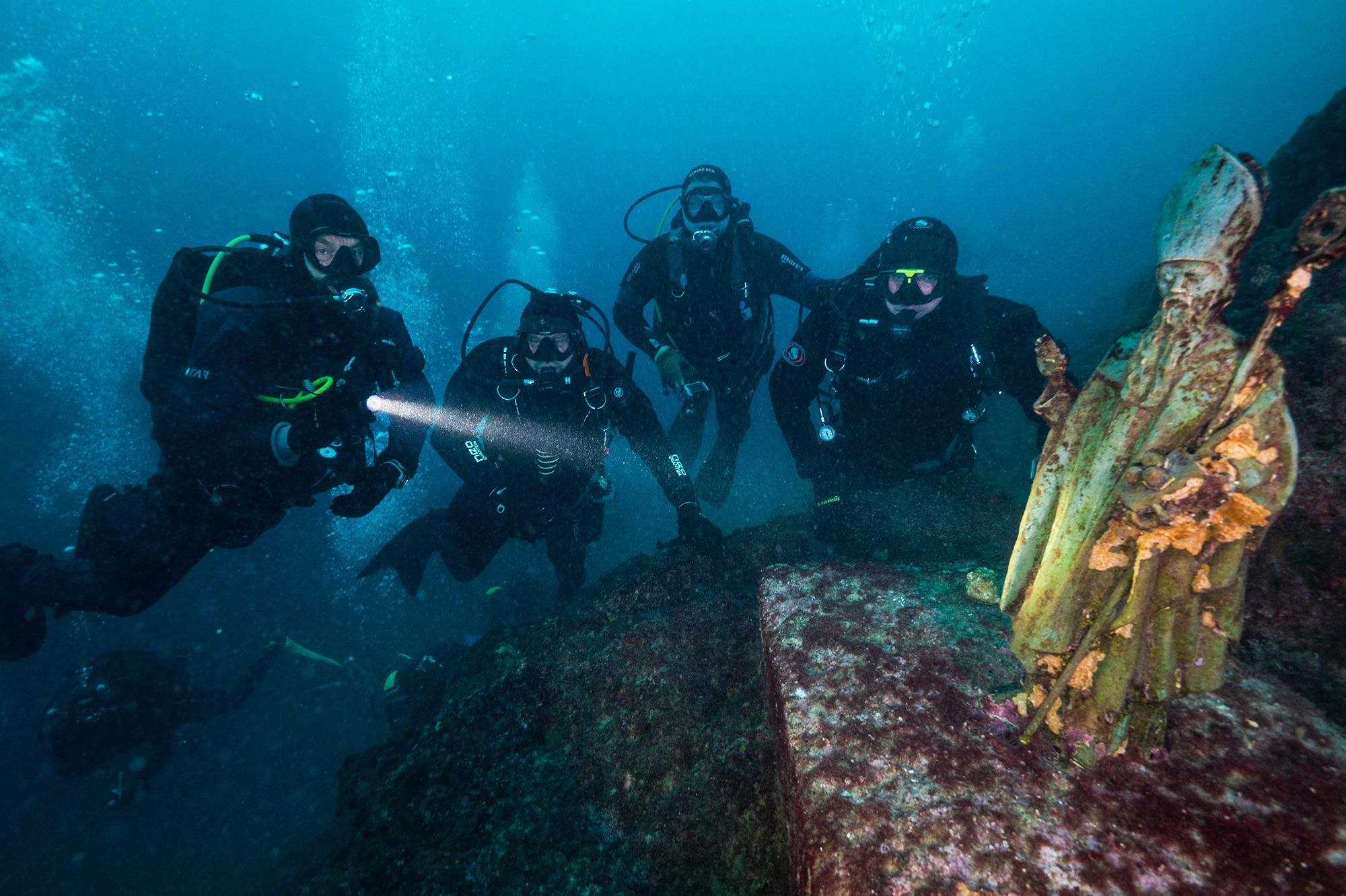 KRALJEVICA - Usprkos vremenskim neprilikama - kiši koja je gotovo neprekidno padala, na 14. podmorskom hodočašću Svetom Nikoli u Kraljevici okupilo se 58 ronilaca iz svih krajeva Hrvatske te ronioci iz Slovenije i Austrije, još jednom potvrdivši tradiciju koja traje.