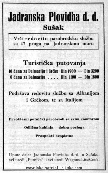 Putničko-teretni parobrod "Beograd" (Jadranska plovidba d.d., Sušak), izgrađen 1916. u Malom Lošinju, ali dovršen tek 1923. kao "Beograd", imao je dva sudara: 5. listopada 1926. pri isplovljavanju iz sušačke luke u njega udara parobrod »Solun«, a 8. veljače 1927., zbog havarije na kormilu udara u parobrod "Split" na Sušaku.