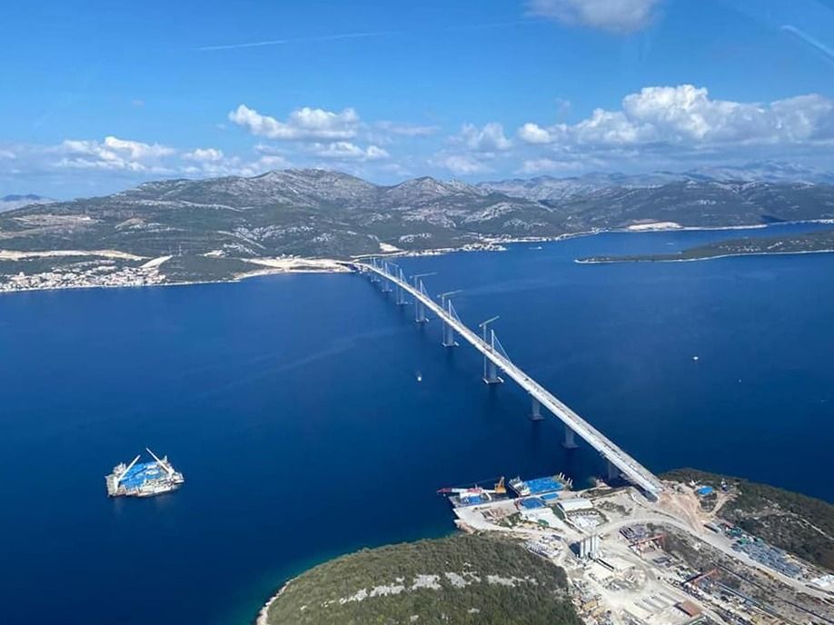 U srpnju 2021. godine postavljen je posljednji segment Pelješkog mosta.