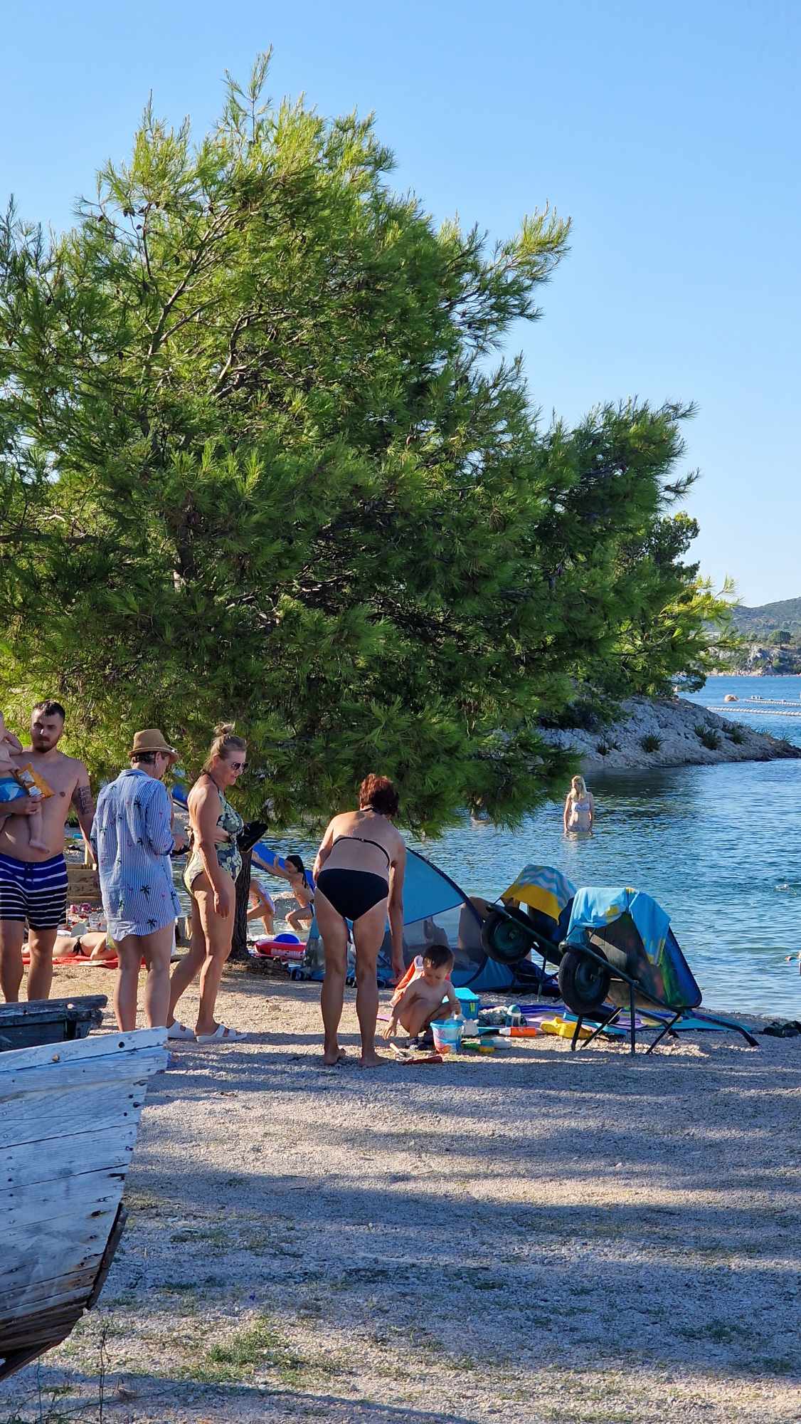 - Svašta smo mi napravili ovih godina... uredili Martinsku ka curicu s novcima koji drugi dobiju za 7 dana nekog j***nog festivala. Mi nismo dobili 2% u 10 godina, snalazimo se. I tu smo sve sami napravili, iskopali gustijernu, provukli cijev u duljini od 400m, odakle slobodnim padom dolazi voda, imamo kabinu za prisvlačenje, skale smo stavili, plažu čistimo godinama i podmorje, napravija sam ljuljačku, klizalicu..."ukra" sam jedina 2 preživila pitara s Poljane i sad su tamo, vidi se jedan na slici, zasadili oleandre... i 5 kvadratnih s rive šta su nekad bili...koncerti, radionice... svašta se događalo... nitko ne jebe al smo upornošću došli da eto vozi brod, proglašena je gradskom plažom i svit je počeja dolaziti i to baš dolaziti... uživaju - nabraja nam.