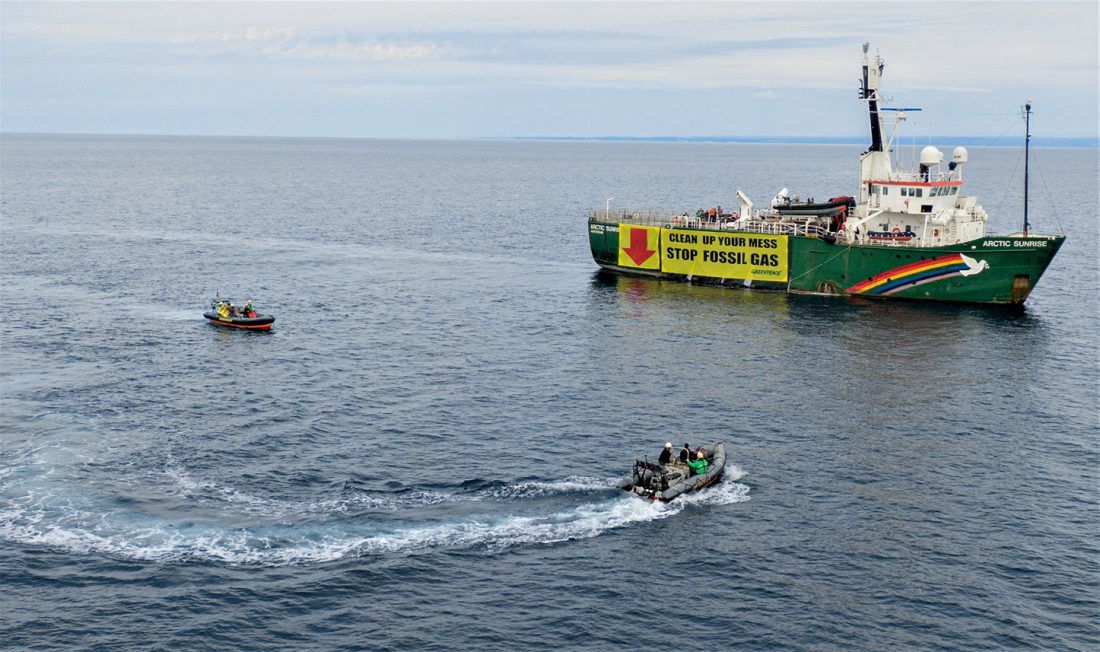 RIJEKA – Gotovo godinu dana nakon što je u Jadranskom moru potonula INA-ina plinska platforma, aktivisti Greenpeacea su na glasovitom brodu Arctic Sunrise u blizini olupine razvili transparent dugačak 23 metra s natpisom “Plinskom biznisu profit, Jadranu otpad”. Od hrvatskih vlasti zatražili su hitno rješavanje pitanja zastarjele plinske infrastrukture i upozorili na opasnost od istjecanja metana tijekom eksploatacije fosilnog plina koji značajno doprinosi klimatskoj krizi. Skrenuli su pozornost na peticiju europske građanske inicijative (ECI) kojom se traži zabrana oglašavanja svih fosilnih goriva i promocija fosilnog plina kao ekološki prihvatljivog.