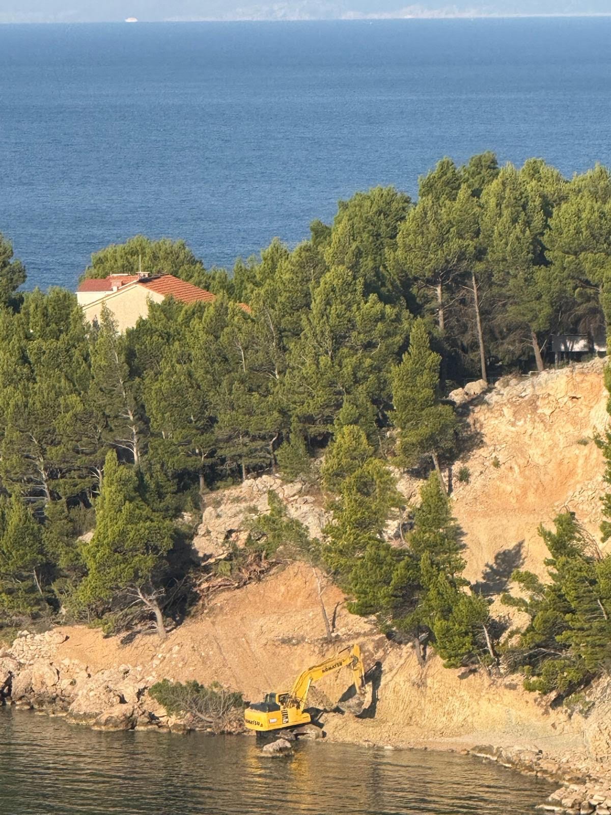Devastator je bagerom započeo teško uništavanje, rušio borove i devastirao prirodnu obalu, doslovno uz samu morsku crtu.