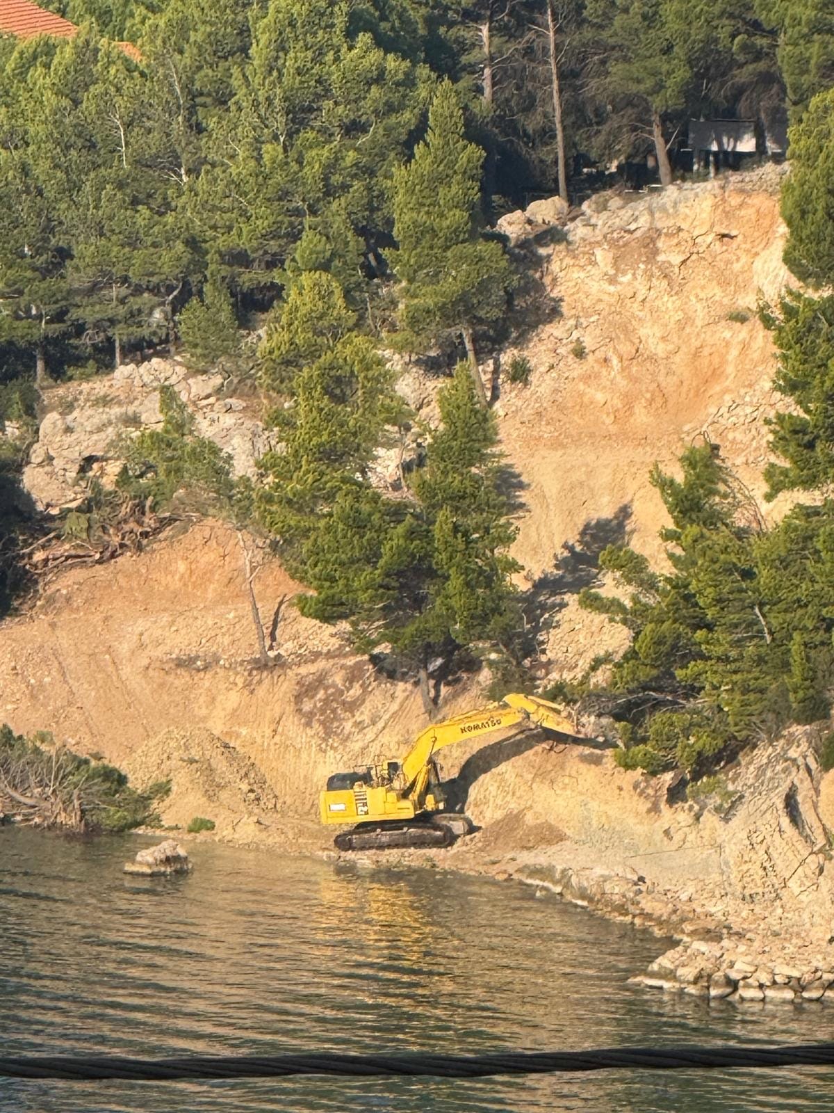 Devastator je bagerom započeo teško uništavanje, rušio borove i devastirao prirodnu obalu, doslovno uz samu morsku crtu.