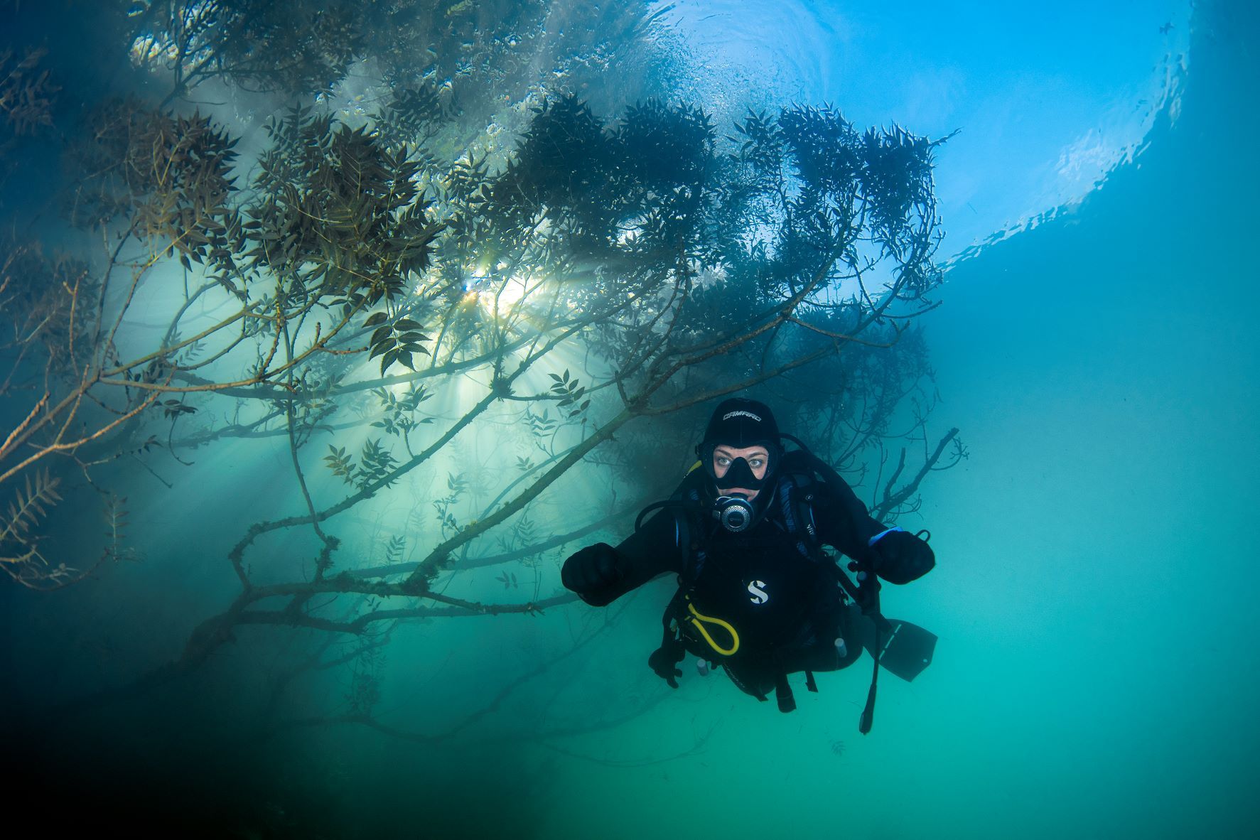 Kako je izgledao naš jesenski uron? Pa...vrlo neobično! Lebdiš između krošnji stabala i iznad šafrana na livadi. Sve je magično i čudesno, poput čarobne šume. Ako se zaroni dovoljno rano i ulovi pokoja zraka sunca, krošnje na površini reflektiraju narančaste zrake kroz sitne listiće i prosijavaju najljepšu igru svjetla i sjene.